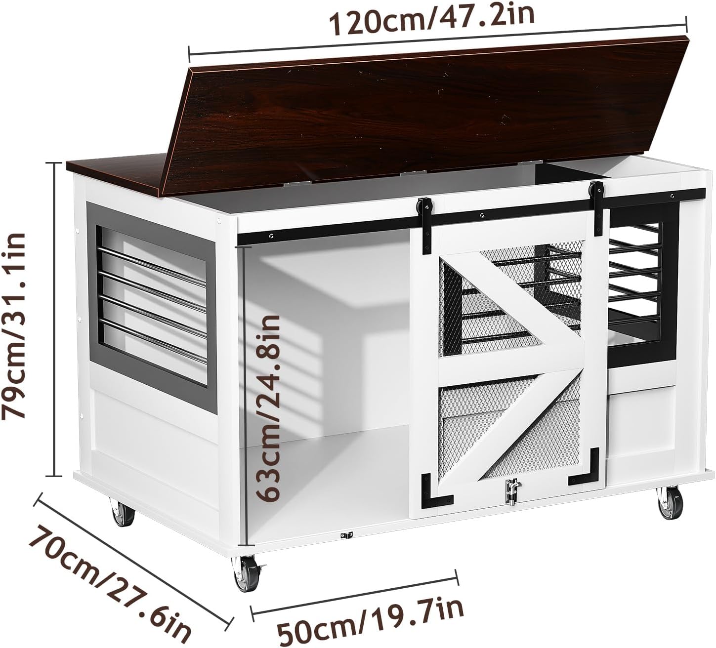 47 inch XL Dog Crate Furniture with Top-Access Teasing/Feeding Doors, Farmhouse Wooden Decorative Dog Crates with Wheels, Chew-Resistant Dog Crates End Table for Medium&Large Dogs, White
