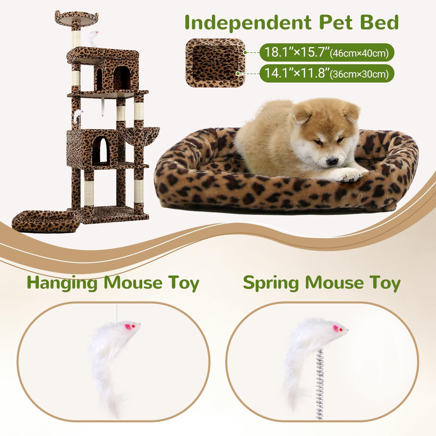 - BONUS INDEPENDENT PET BED- Featuring a separate pet bed(17.7"x 13.4") that is not only suitable for cats but can also be used independently. it can be placed under the cat tower or in your cat's favorite spot. It is also suitable for multi-pet households, allowing other pets to enjoy