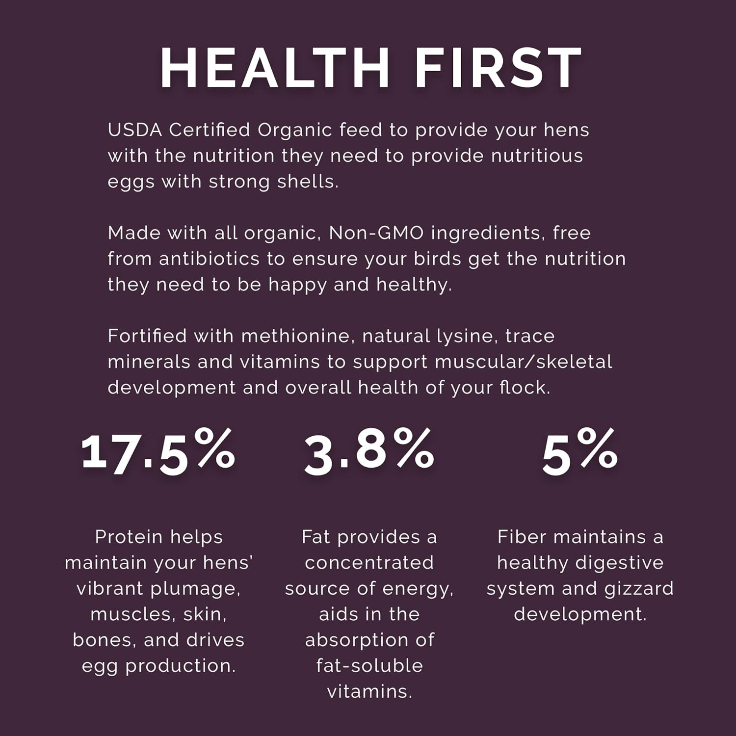 Layer Crumb Feed, 25lbs - Non-GMO, High-Protein Poultry Feed for Healthy Hens & Nutritious Eggs, 17.5% Protein - USDA Certified Organic Blend, Soy & Corn-Free