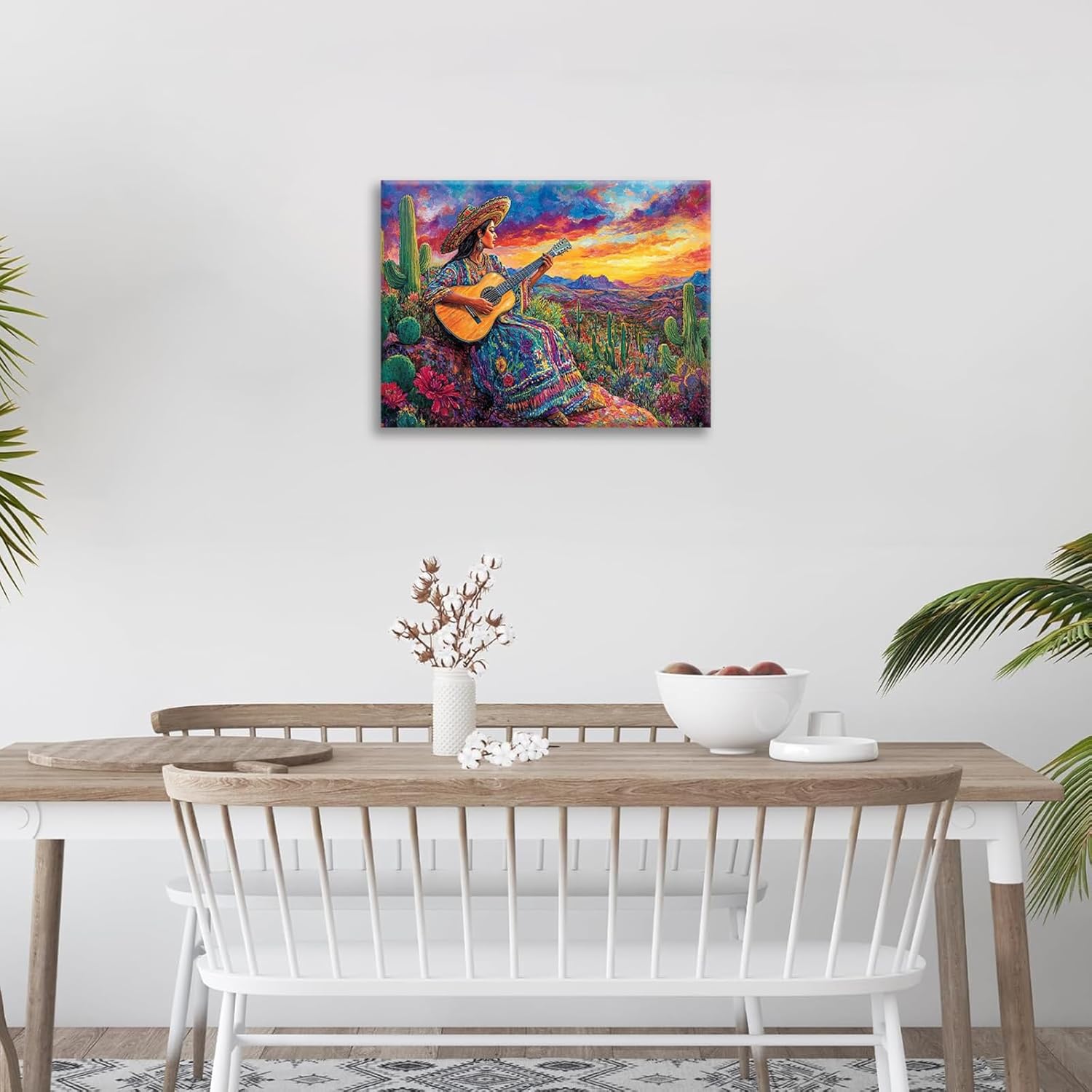 Mexican Women Pictures Wall Art, Cactus Landscape Bathroom Wall Decor, Nature Scenery Aesthetics Framed Painting Desert Modern Canvas Artwork for Bathroom Bedroom Living Room Decorations 20"L x 16"W