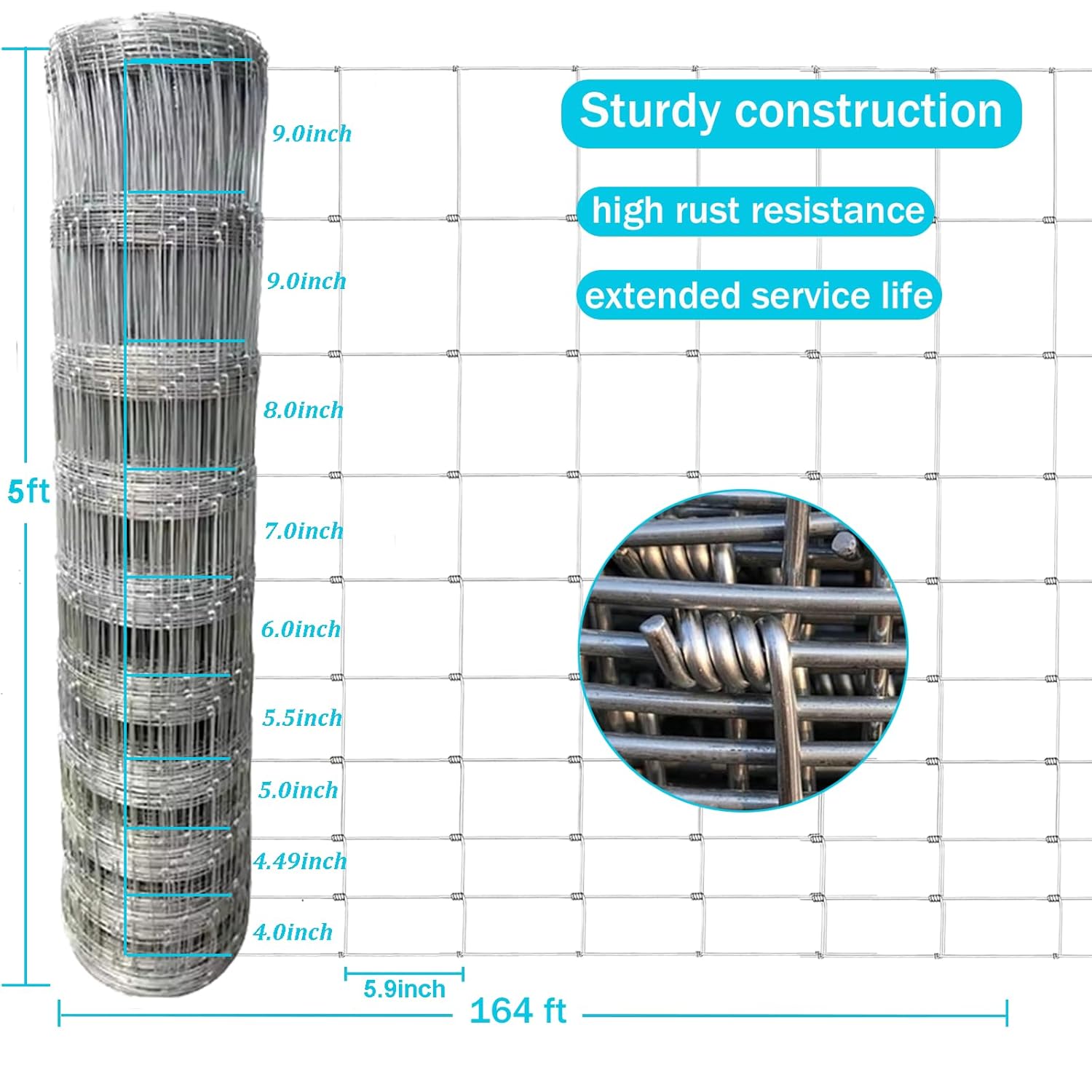 Farm Fence 5x164FT, Galvanized Wire Fencing, Zinc Coated Cattle Fences Used to Hog Goat Fencing for Yard Garden and Field
