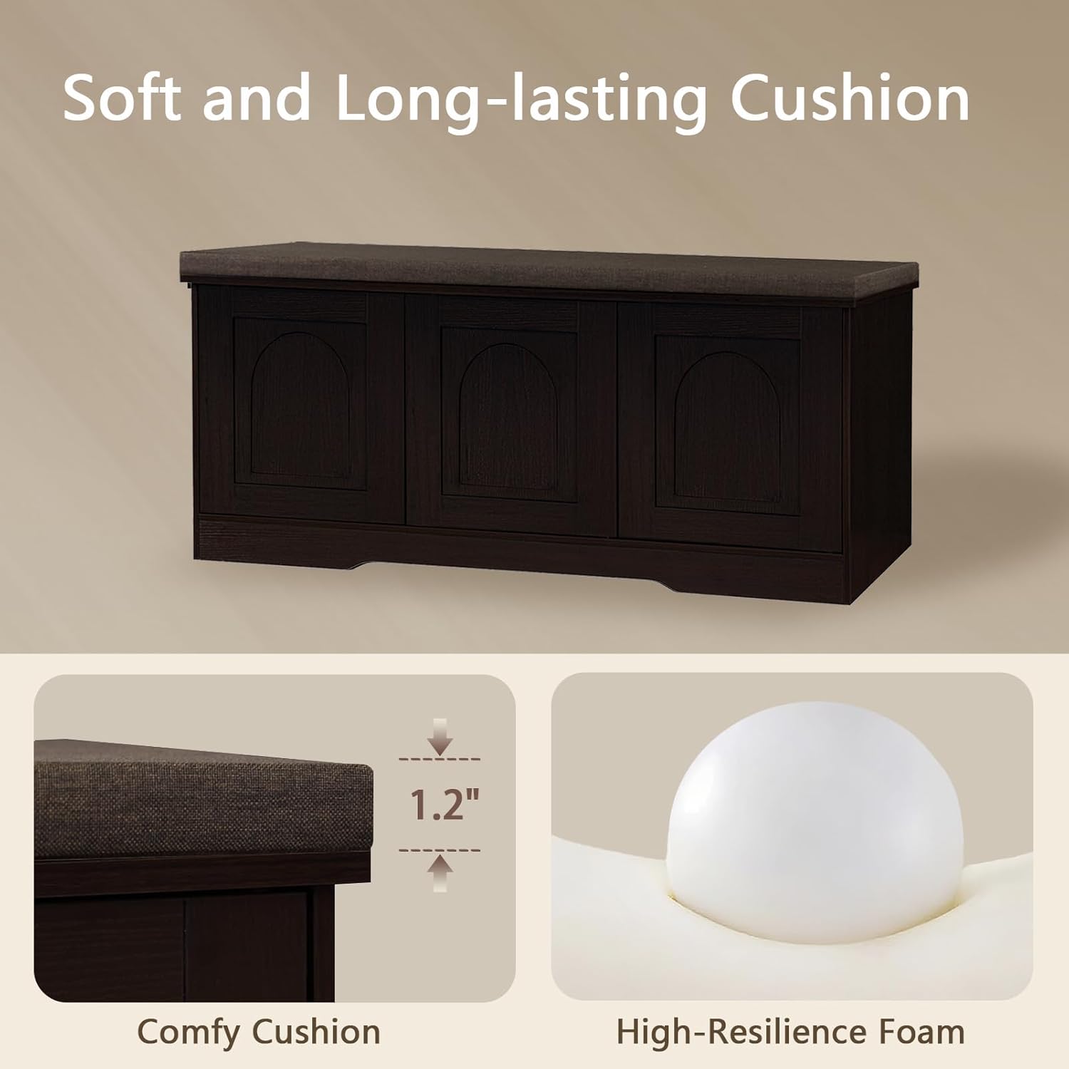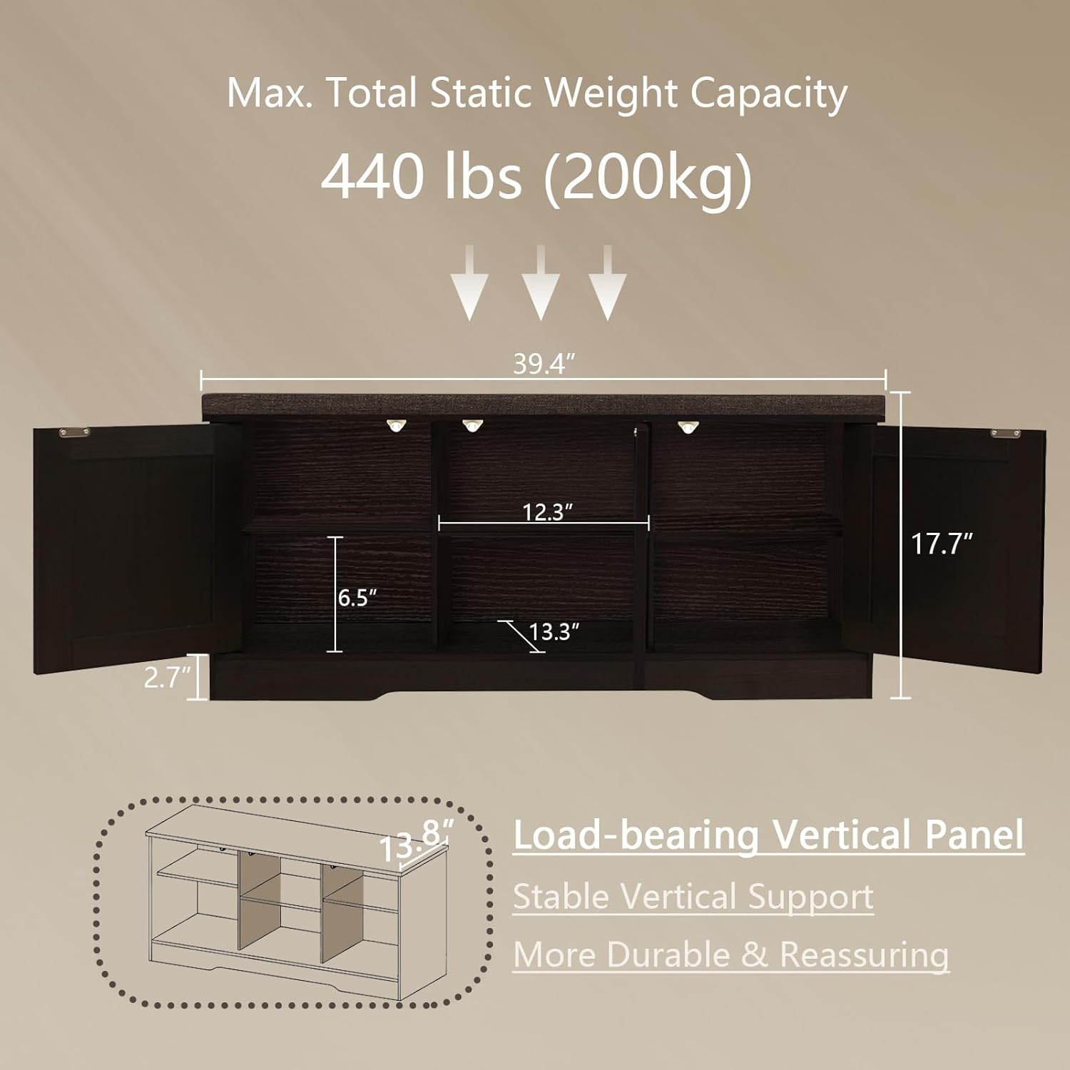 DINZI LVJ Shoe Bench, Entryway Storage Bench with Doors, Cushion, 2-Tier Shoe Rack with 6-Cubby, 39.4”L x 13.8”W Shoe Organizer Cabinet, Adjustable Shelf, Living Room, Bedroom, Espresso