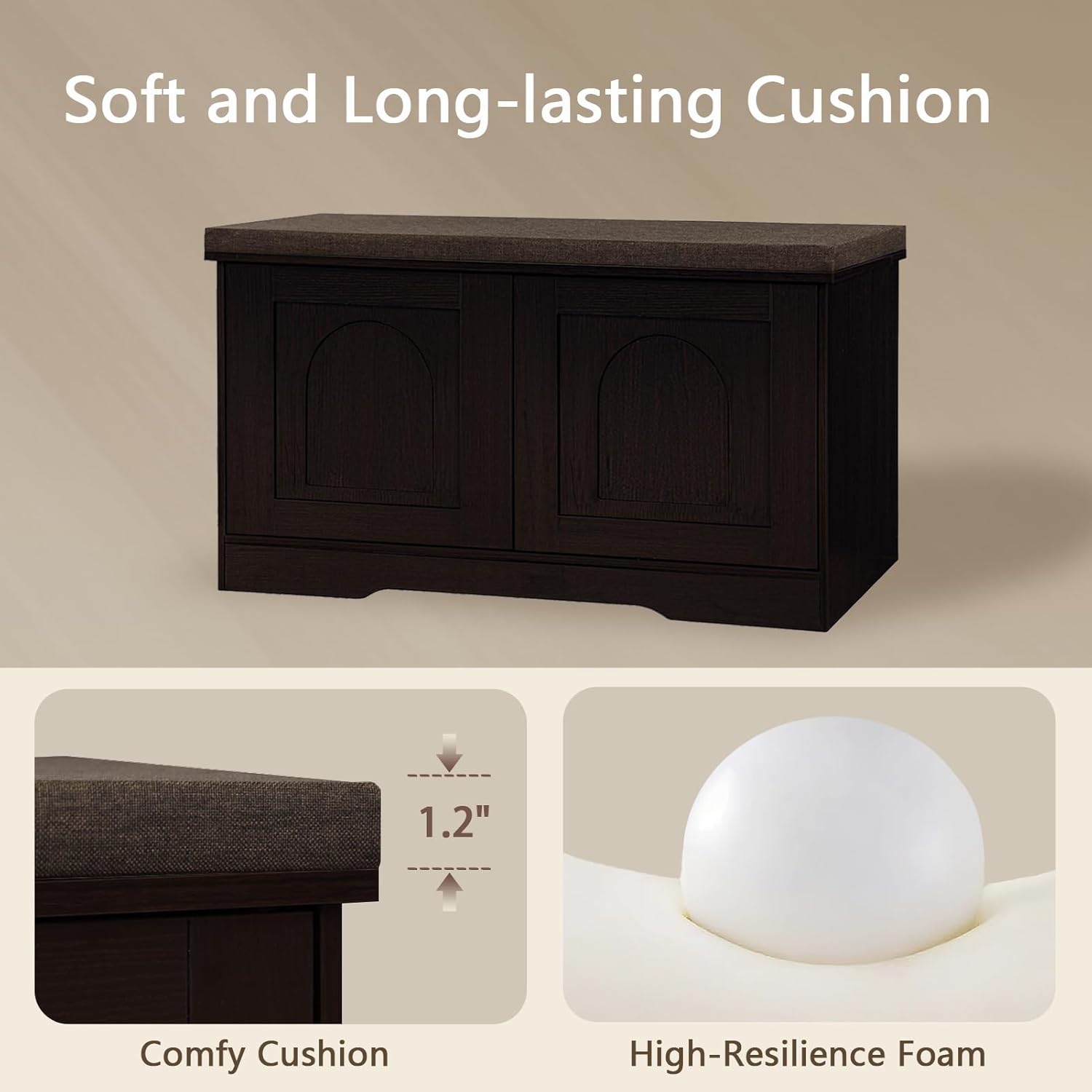 DINZI LVJ Shoe Bench, Entryway Storage Bench with Doors, Cushion, 2-Tier Shoe Rack with 6-Cubby, 31.5”L x 13.8”W Shoe Organizer Cabinet, Adjustable Shelf, Living Room, Bedroom, Espresso