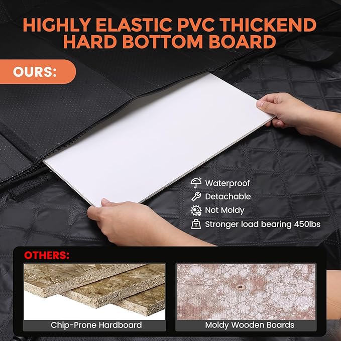 Back Seat Extender for Dogs - Holds 450lbs, Waterproof Dog Car Seat Cover for Back Seat with Hard Bottom for Cars SUVs Truck,Anti-Scratch No Slip Large Space Pet Backseat Protector,Black