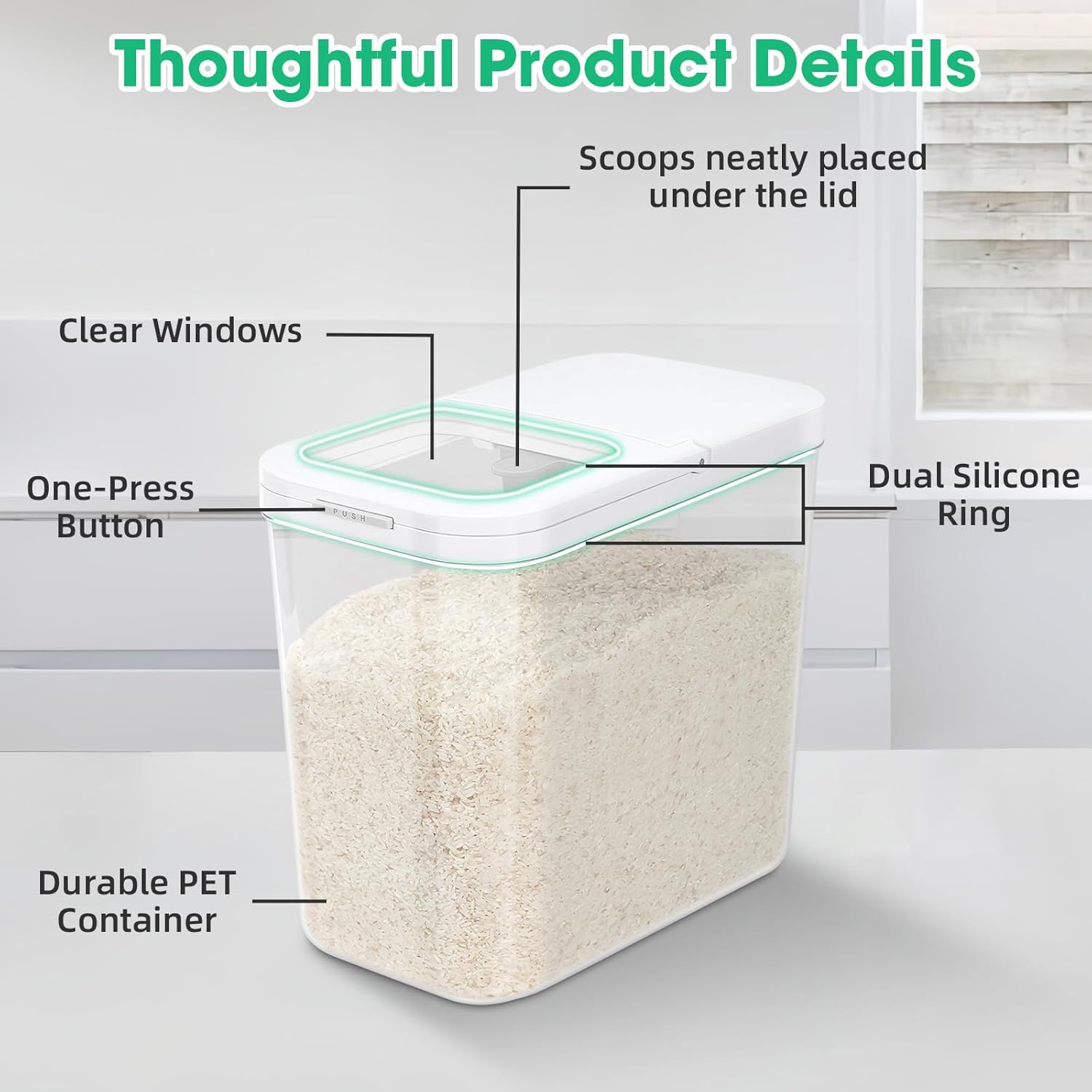 - SEAL TIGHTLY: Every rice storage container has been designed to seal in freshness and ensure your food always stay fresh. The sleek and see-through design offers a clear view of the contents and remind you the time to replenish