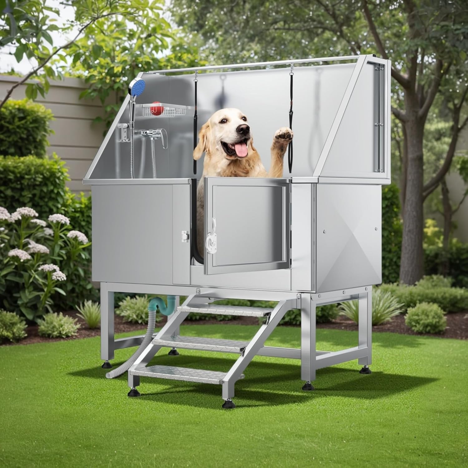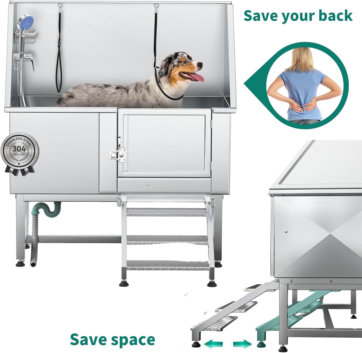 - Durable Construction: The body of the pet bathtub is Made from 304 stainless steel with a 330 lbs load capacity, ensuring resistance to deformation and rust for long-lasting durability and easy maintenance