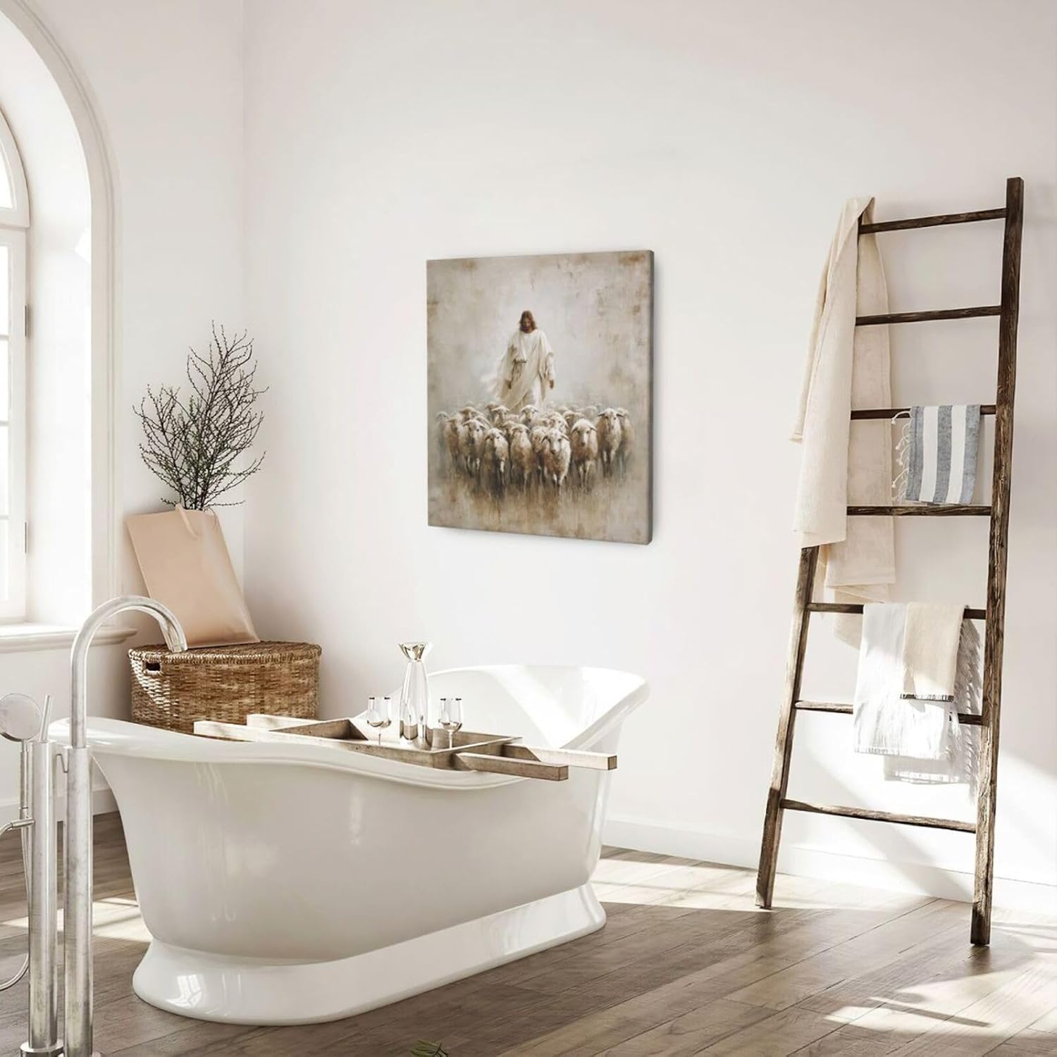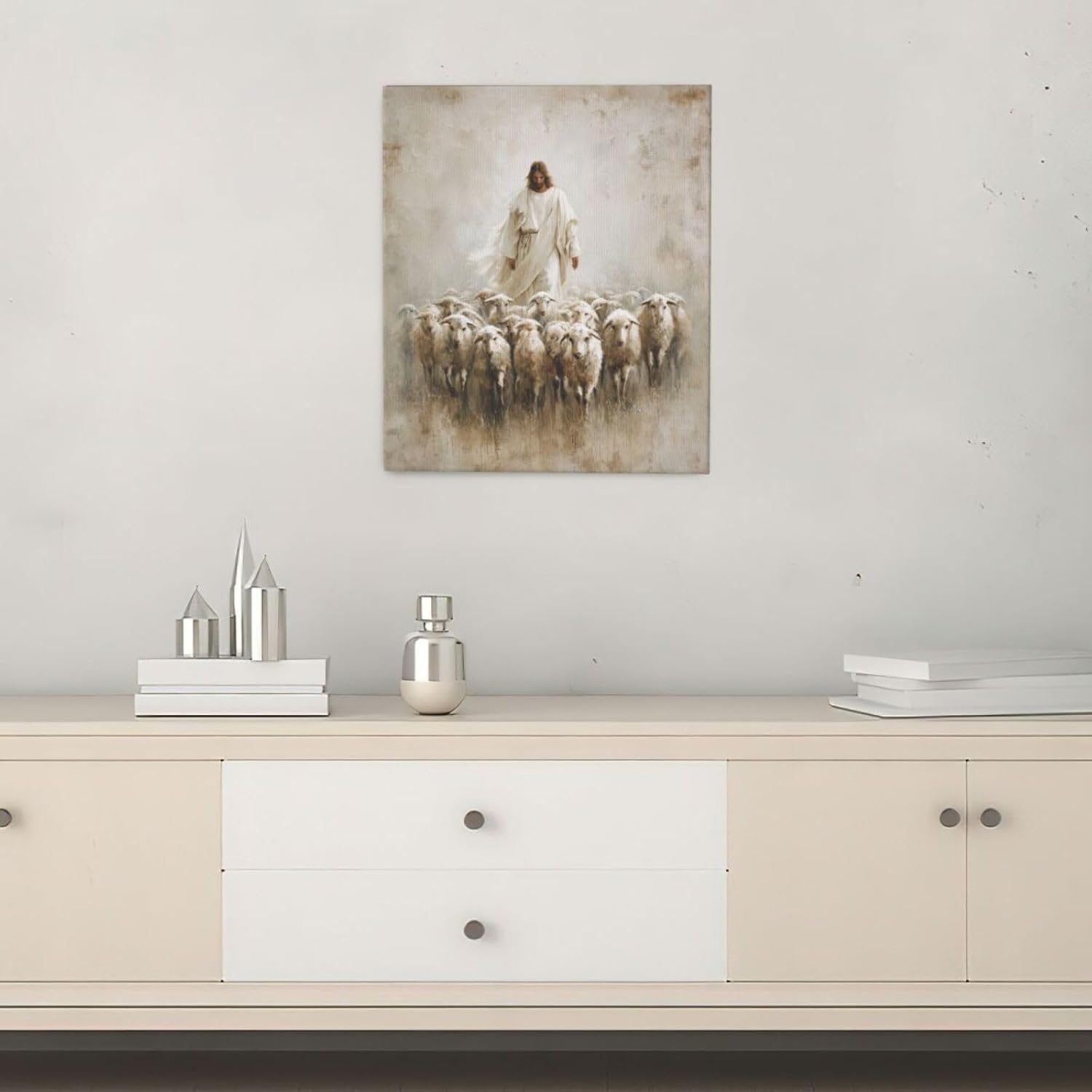Jesus and Lamb Wall Art Christian Jesus Lamb Canvas Wall Decor Christ Religious Pictures painting Print Framed Artwork Decorations Gifts for Living Room Bedroom Prayer Room Church 24"x20"