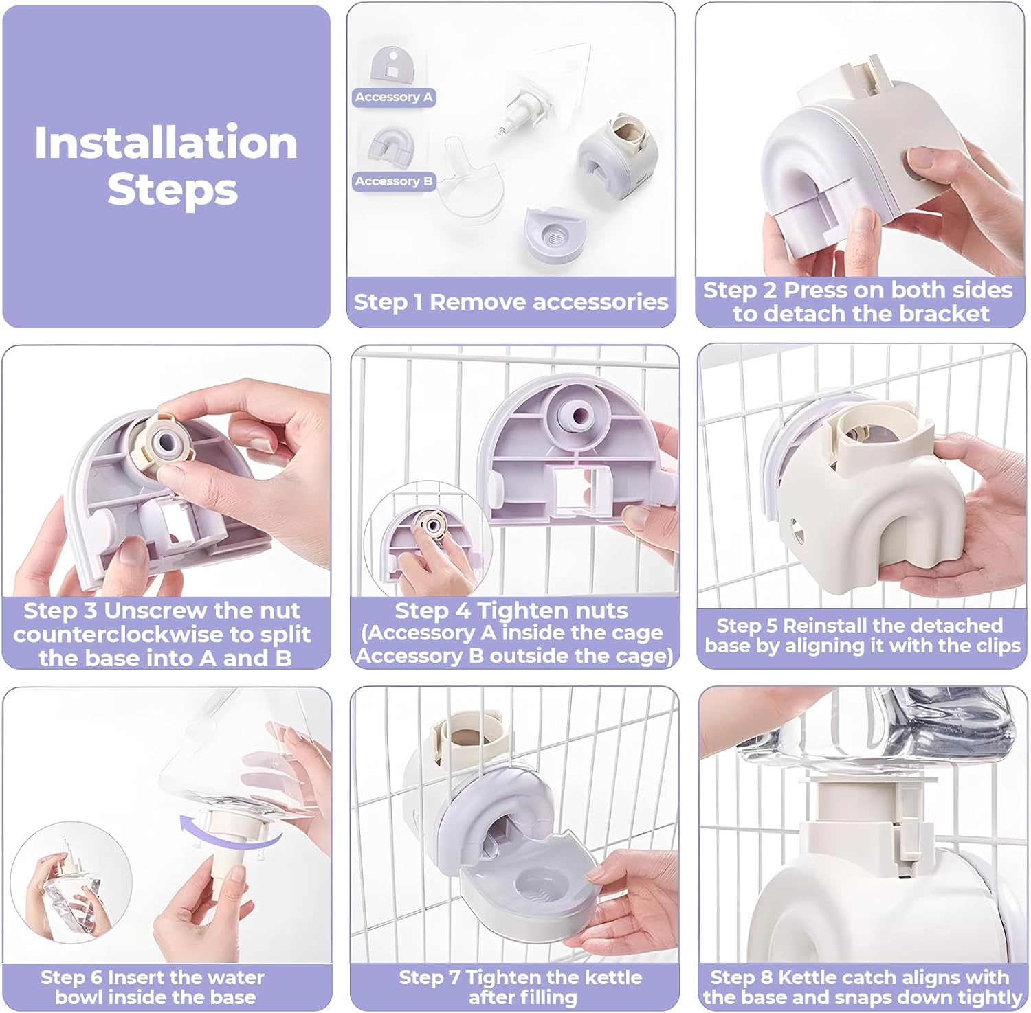 - Adjustable Height & Anti-Tip Hanging: Small animal water bottle secure knob-mounted hanger allows custom spout positioning to prevent neck strain, plus stabilizes the bottle against pet nudges