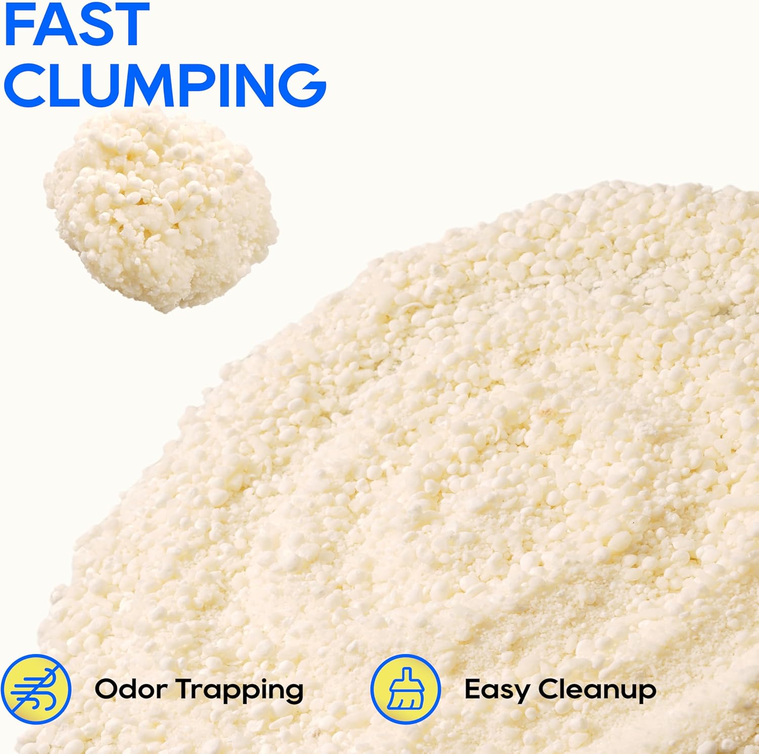 - Upon contact with moisture, the cat litter forms firm and compact clumps that effectively trap odors and liquids, preventing dors from spreading and making cleanup effortless and efficient.