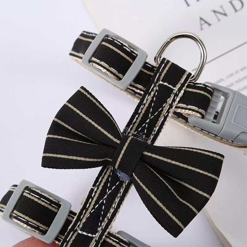 Butterfly Bow Tie Cat Harness and Leash Set - Adjustable, Escape-Proof, Breathable Kitten Vest with Cute Design for Small Cats & Indoor/Outdoor Safety Black XS