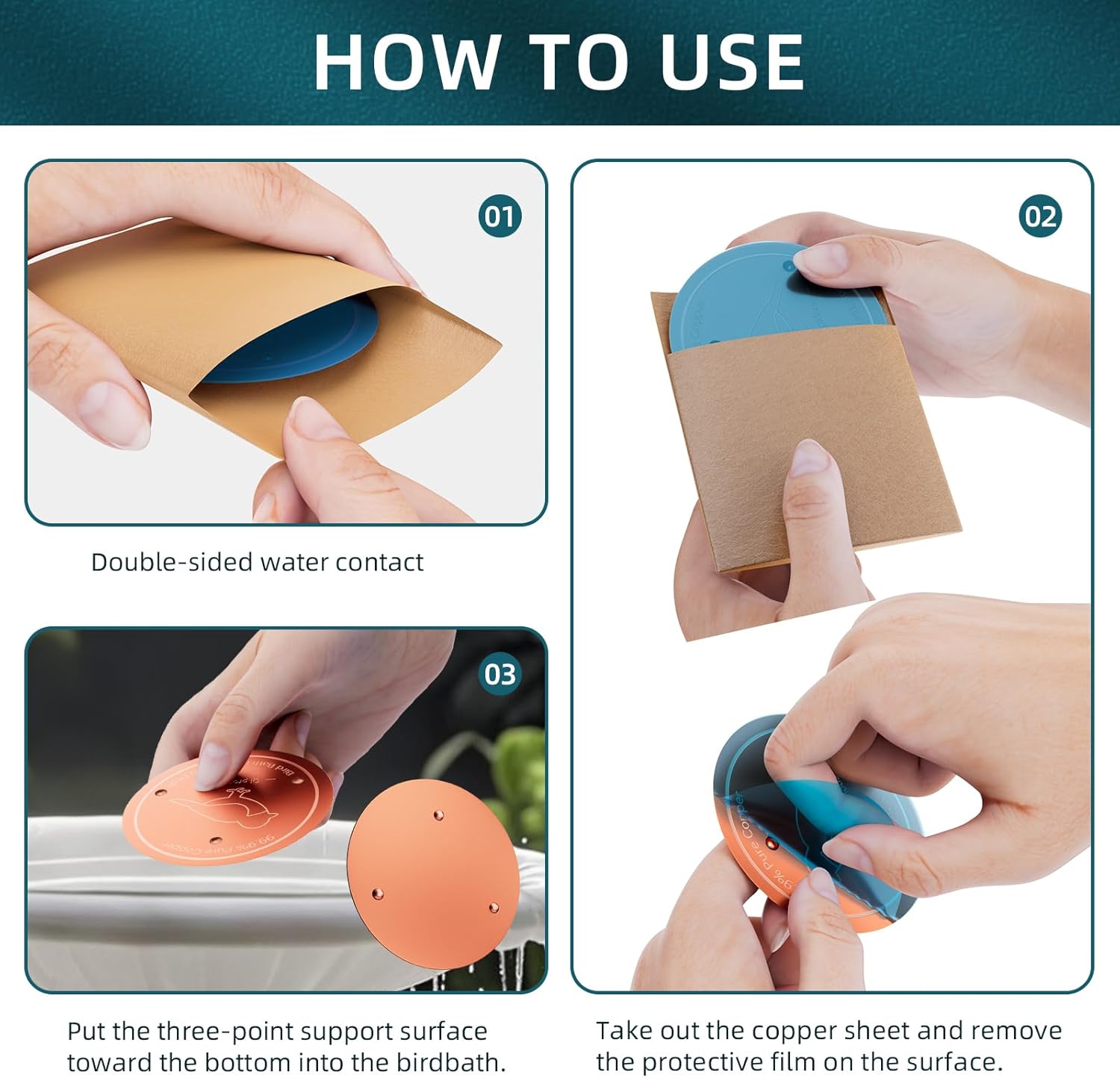 Bird Bath Copper Disk – 99.99% Pure Copper Water Cleaner, 1 mm Thick with Stable Triple-Point Support, Safe Natural Solution for Outdoor Birdbaths Bowls, All-Season Use,Bird,1pcs