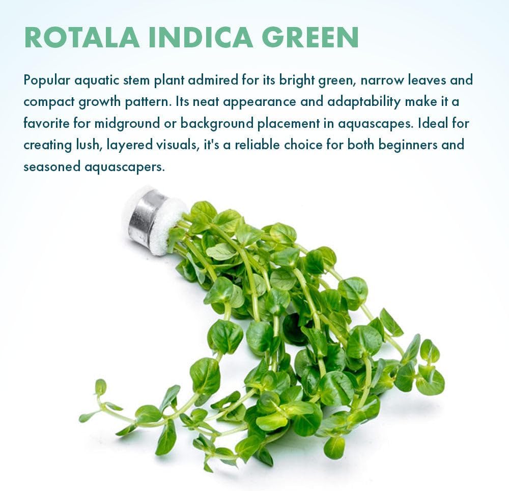 - Rotala Indica Green grows upright with bright green foliage and performs well in midground to background.