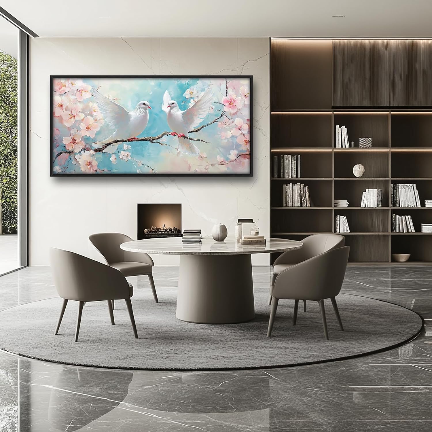 Large White Dove Flower Wall Art for Living Room, Framed Oversized Pigeon Cherry Blossom Wall Decor Nature Canvas Painting Modern Artwork for Living Room Bathroom Bedroom Office Dining Room 60"x30"