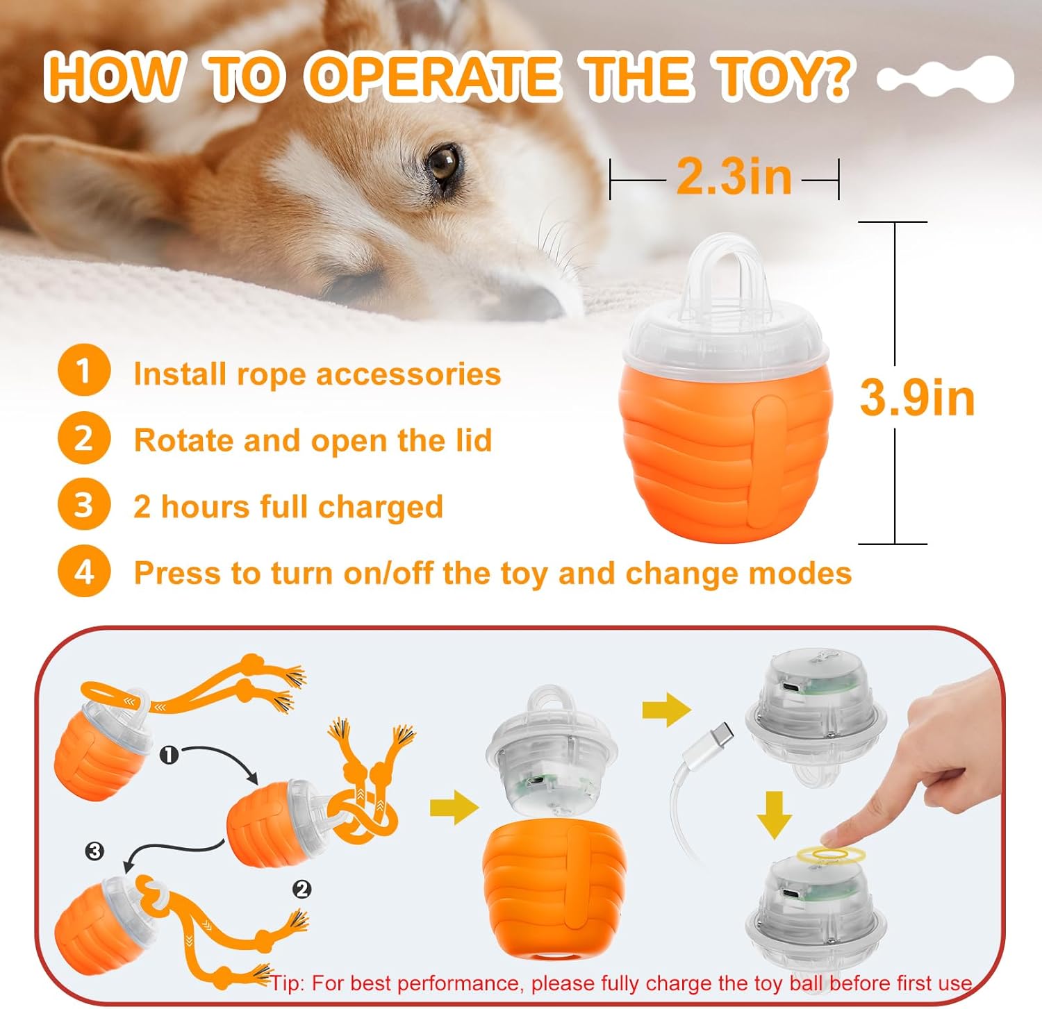 - [2025 Newly Upgraded] - This interactive dog ball provides a captivating play experience. It rolls unpredictably with an attached rope, mimicking the movements of prey. Built-in sound features such as chirping birds or Bluetooth connectivity to play music and other sounds will keep your pet interested. Motion-activated sensors mean it comes to life with a touch or a pat, stimulating dogs natural hunting instincts.