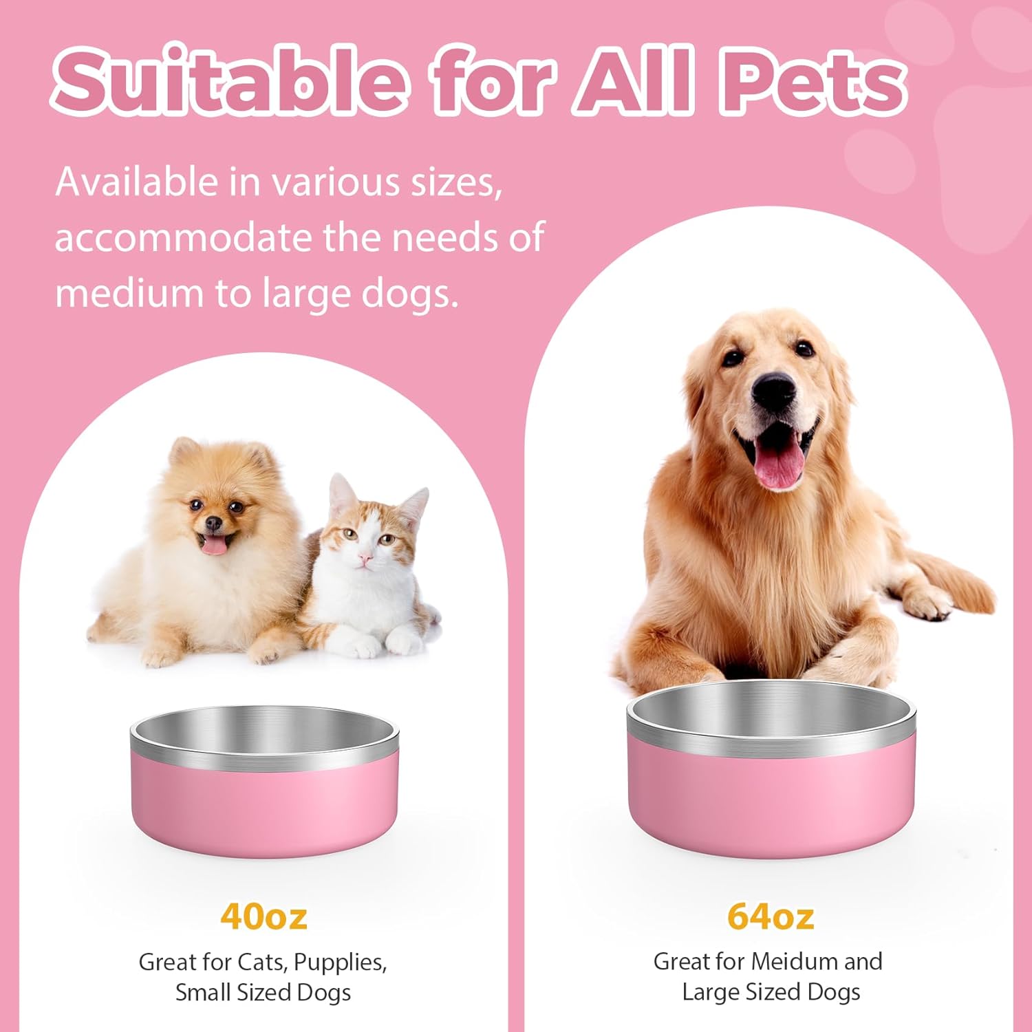 LIANLAI Dog Bowls Large Sized, Rust-Resistant Stainless Steel Dog Bowls, Non Slip Puppy Dishes, Dishwasher Safe (Pink,64 oz)