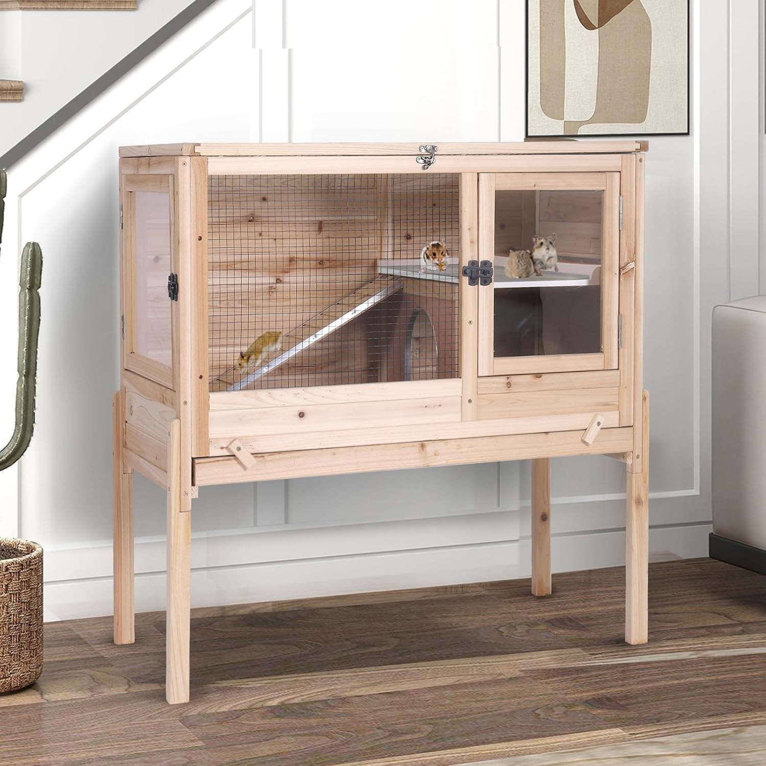 Guinea Pig Cages with Anti Chewing Edges and Cool Zinc Plate, Indoor Rabbit Hutch with Hideout and PVC Platform, Elevated Legs Hamster Cage 36.6" L (Nature)