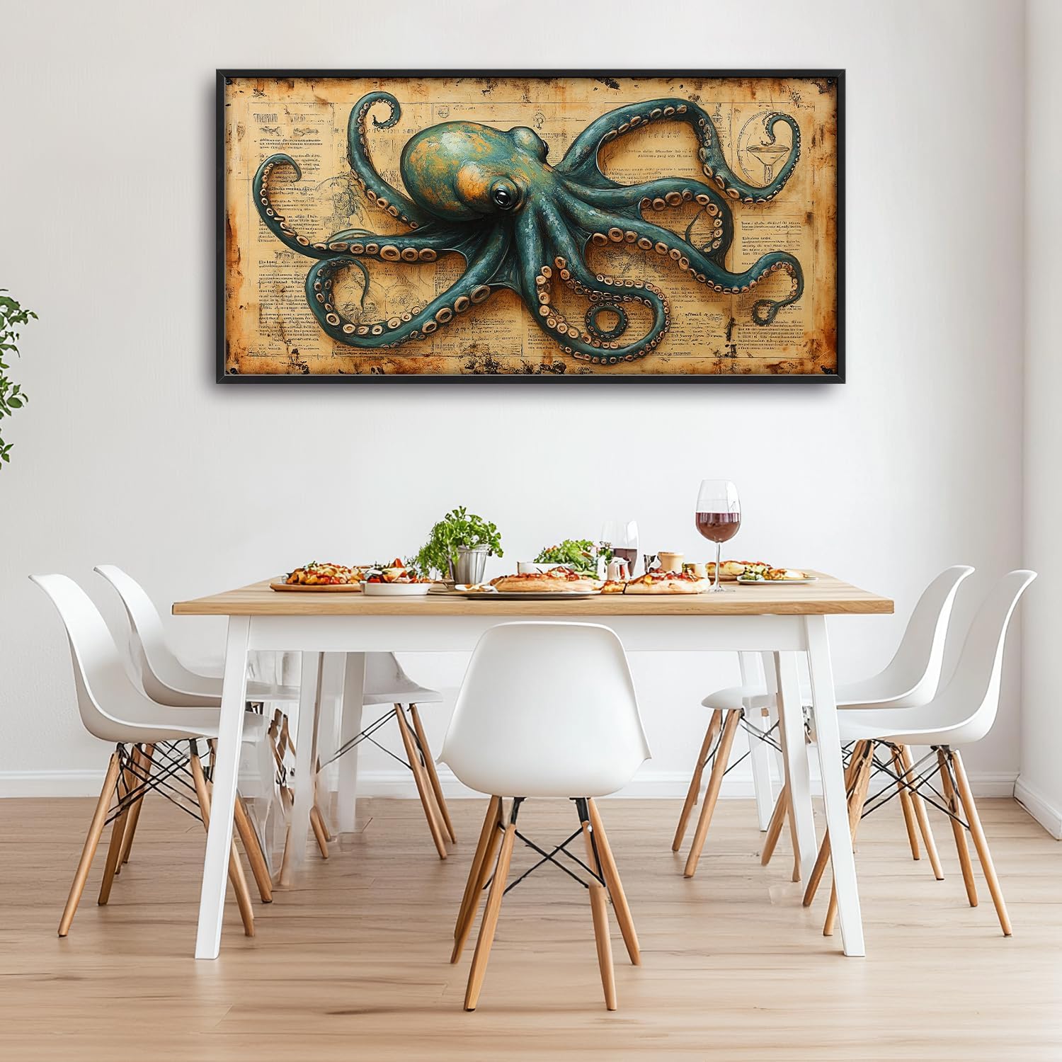 Large Octopus Nautical Wall Art for Living Room, Vintage Ocean Canvas Oversized Wall Decor, Rustic Sea Animal Framed Pictures Painting Print Artwork for Bedroom Office 60"L x 30"W