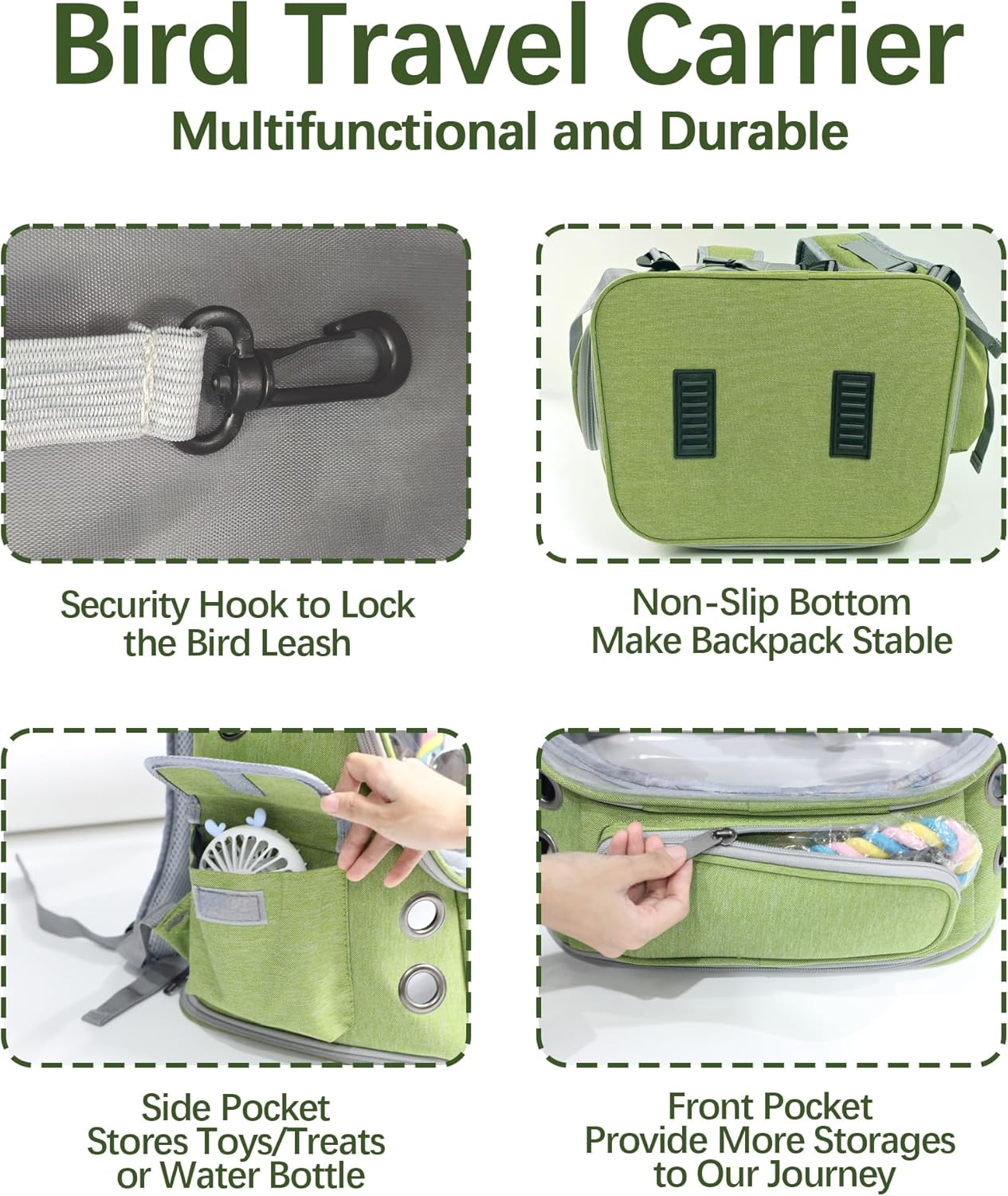- 【Escape-Proof Safety & Ergonomic Comfort】This new design cocktail travel cage has anti-slip zippers + security hook to lock the bird or other pets to prevent escapes. Built with durable, top-quality Oxford fabric, our bird carrier backpack offers lasting comfort. The soft back padding and adjustable chest buckle ensure optimal weight distribution, keeping both you and your bird comfortable on the go.