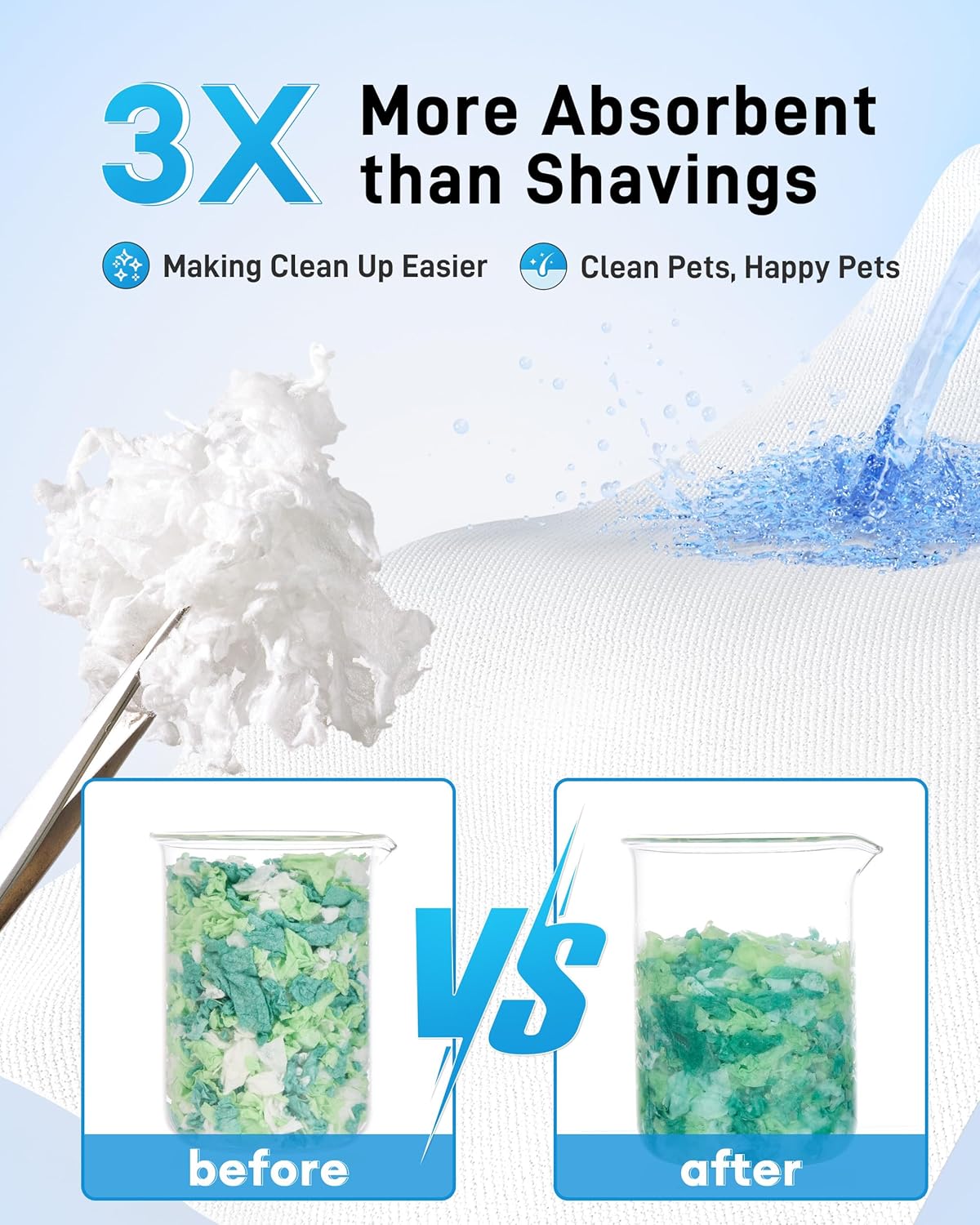 - ๐ก๐ผ ๐ข๐ฑ๐ผ๐ฟ ๐ญ๐ฒ๐ฟ๐ผ ๐๐ฑ๐ฑ๐ถ๐๐ถ๐๐ฒ - Without any chemical additive, it keeps your pet's habitat smelling fresh and clean with a natural paper smell. It's 3x more absorbent, locking away odors. Sealed in a foodโgrade PE bag to stay clean and dry during transportation. Any initial plastic smell will fade in a few hours if you place it in a well-ventilated area.