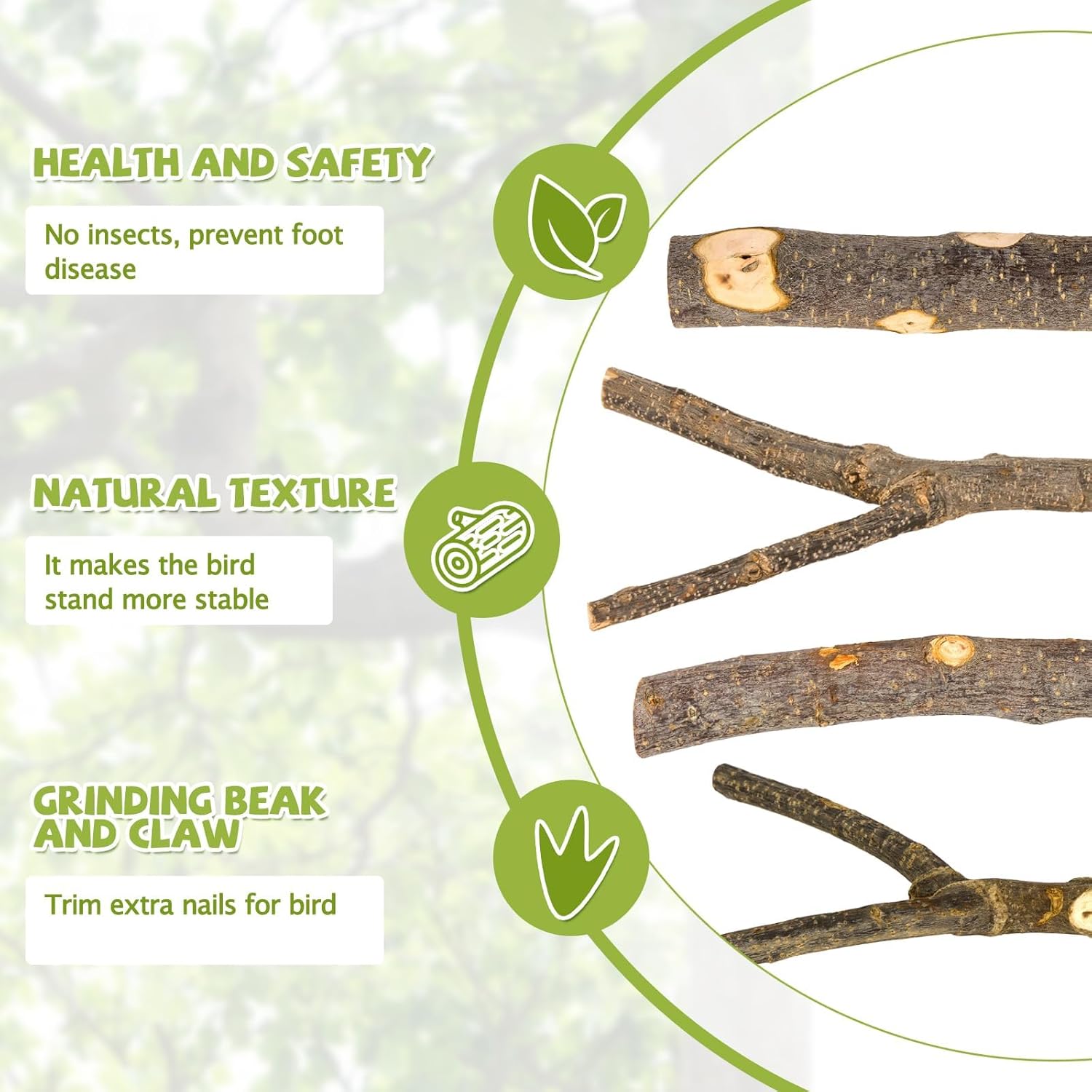 - Varied Shapes for Enrichment - Includes naturalistic branches, forks, and platforms to create stimulating climbing environments that mimic birds' wild habitats.