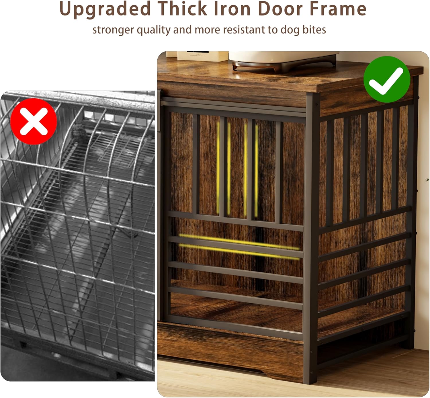 - 【Versatile Furniture Dog Crate】This chic, furniture-inspired double dog kennel furniture combines elegance and practicality. More than a pet enclosure, it doubles as a functional piece of furniture. The wide top surface is ideal for decorations, books, or daily essentials, while the rustic wood-grain design and classic bar structure seamlessly complement living rooms, bedrooms, or farmhouse-style décor. Perfectly blending aesthetics and functionality, it lets your pets stay close while enhancing your home’s style.