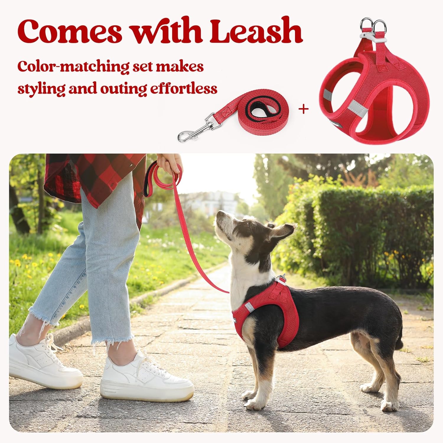 rabbitgoo Dog Harness Small Sized and Leash Set, Step in Soft Light Puppy Vest, Breathable Mesh Pet Harness, Reflective for Safe Easy Walking, Red M