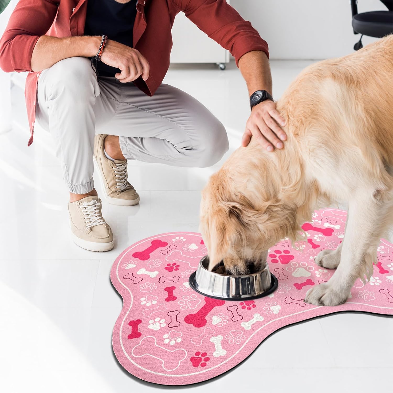 Dog & Cat Food Mat Bone Shaped Pet Feeding Mat Quick Absorb Water Bowl Placemat with Rubber Backing Indoor Floor Stain Resistant Pet Accessory Supplies (Light Pink, 16x24 Inches)