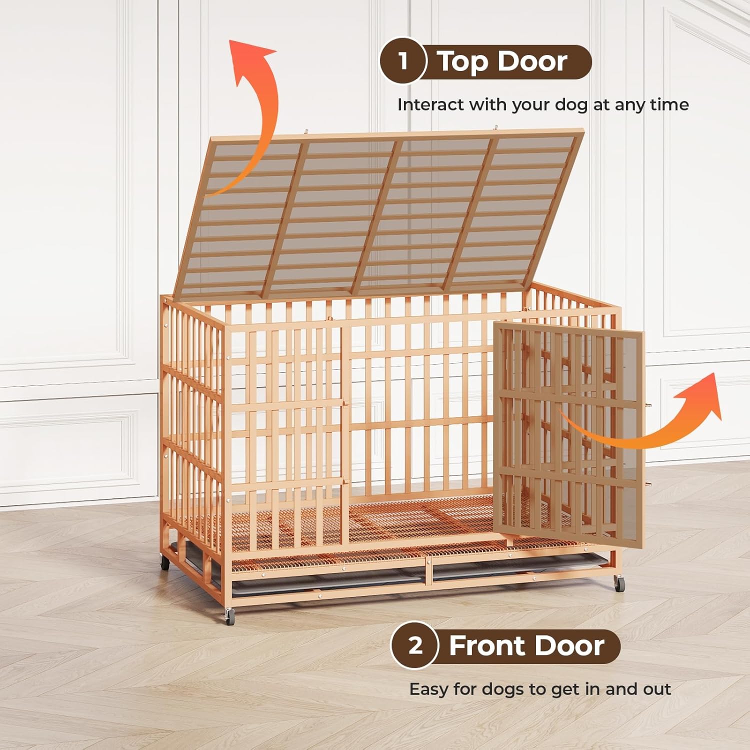 - Durable Orange Dog Crate:This upgraded 48-inch dog cage with a orange coating is built to be truly indestructible. Made from corrosion-resistant, reinforced steel tubes with a 0.79-inch diameter, it features a multi-layered, non-toxic protective coating to ensure your dogโs health. Ideal for most medium and large dogs.
