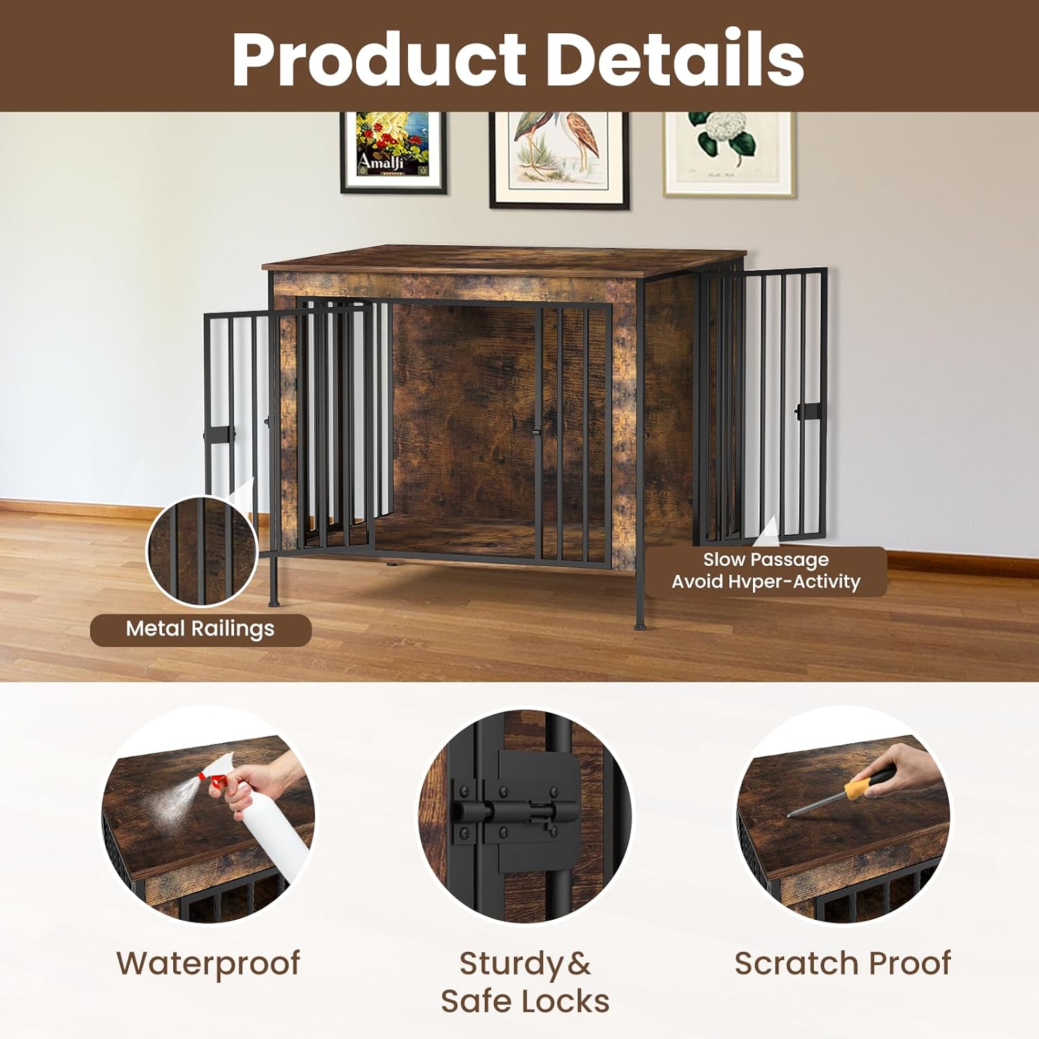 - Furniture-Style Dog Crate Table: The long rustic wood top turns the unit into a 78-inch console or TV stand that holds lamps, plants, books and more. It blends with modern, farmhouse or industrial dรฉcor, saving floor space by combining storage and a stylish dog cage furniture piece.
