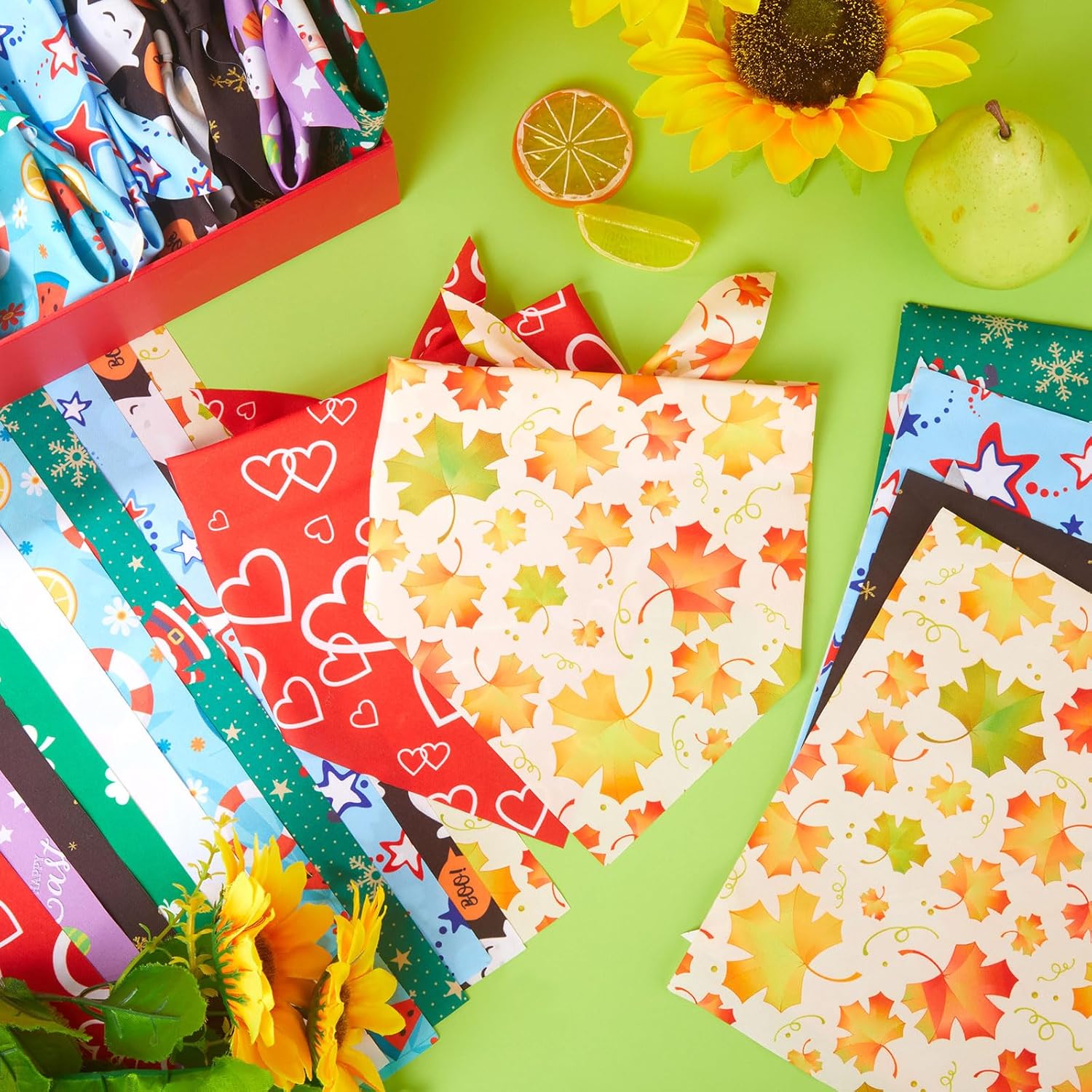 - Sweet Design: our dog bandana for dogs are printed with a variety of Holiday designs, such as Maple leaf, heart shape, ghost, four-leaf clover festival elements, Meet your dog's holiday needs all year round