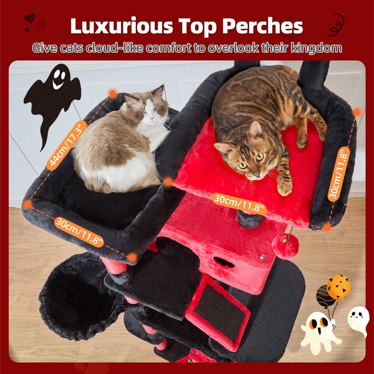 Taoqimiao Gothic Cat Tree 71-Inch, Cat Tower for Indoor Cats Large Adult, Large Cat Condo, 8 Sisal Scratching Posts, Metal Frame Cozy Hammock, Scratch Board, 2 Perches, Black and Red MS026LBR