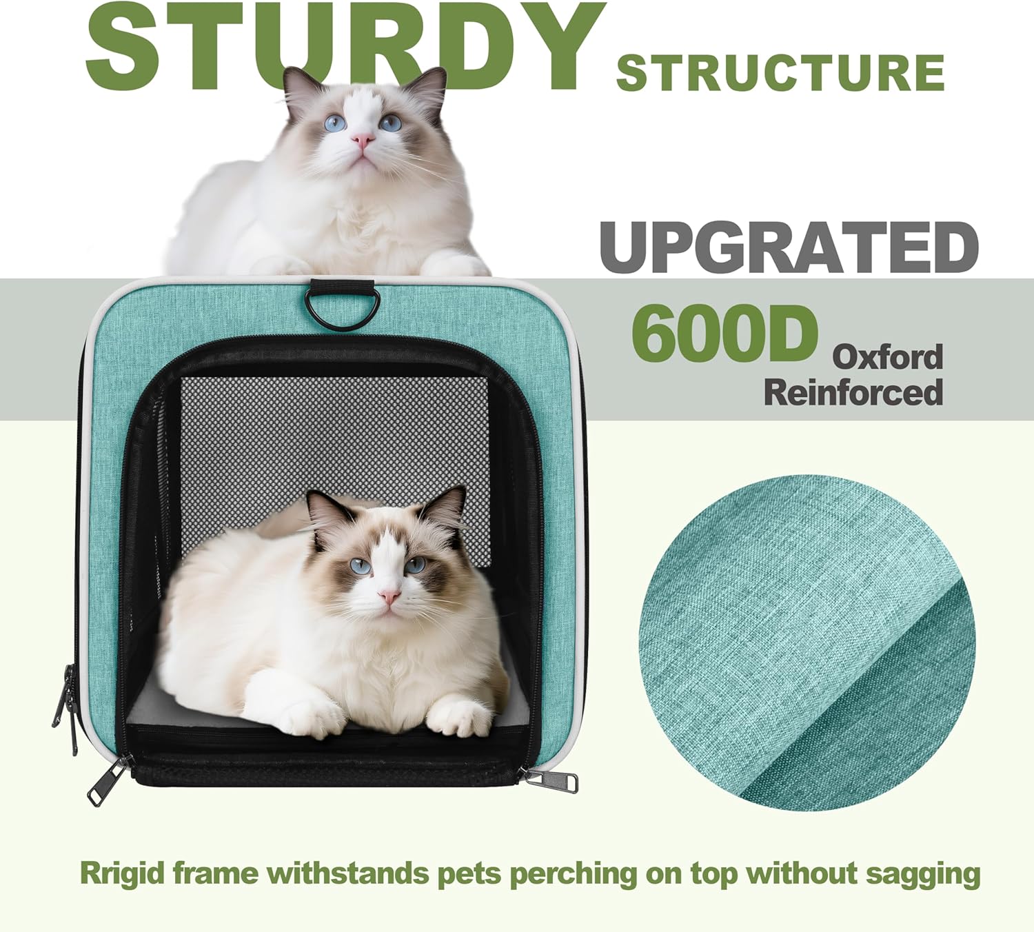 - Escape-Resistant - Self-locking zipper sliders prevent clever kitties from opening this animal carrying bag from the inside while traveling. Reinforced 600D oxford fabric prevents anxious cats or little dogs from claw damage