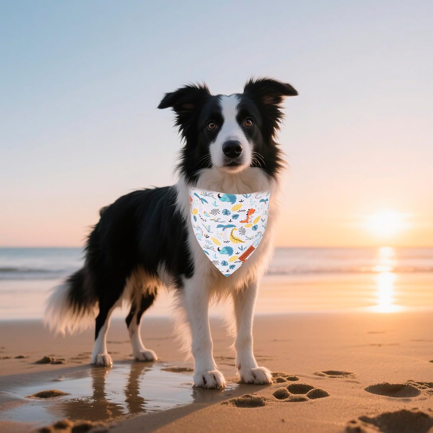PTDECOR Dinosaurs Dog Bandana, Dinosaurs Design Reversible Pet Scarf Bib, Premium Durable Fabric, Adjustable White Green Bandanas for X-Large Dogs Pets (X-Large)