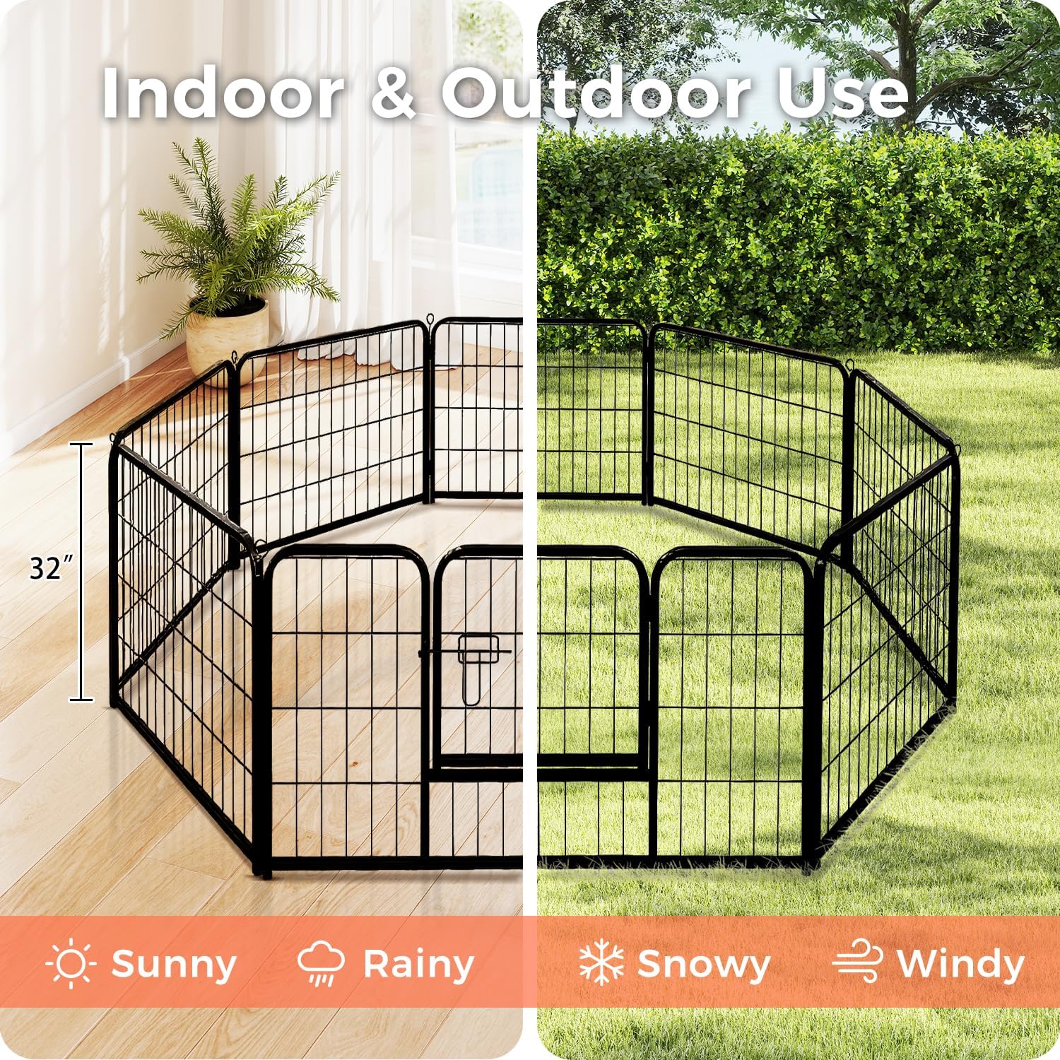 32 Inch Dog Playpen - 8 Panels Metal Pet Exercise Pen for Small-Medium Dogs, Indoor/Outdoor Dog Fence for Yard, Garden, Camping & RV Travel