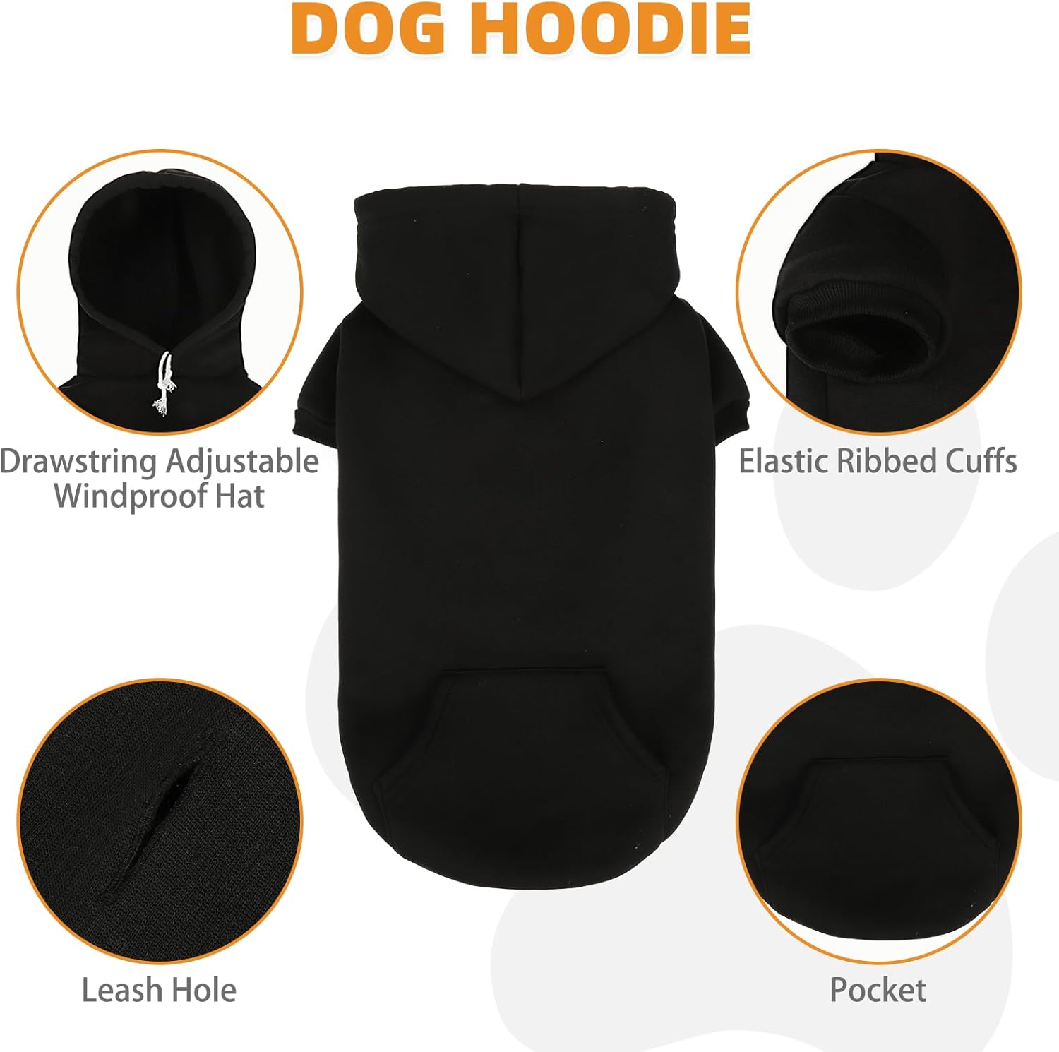 - Stylish Hooded Design with Snug Protection:Made with premium polyester and warm fleece lining, our dog sweatshirt offers an ultra-soft, cloud-like feel your pup will adore. Ideal for chilly fall/winter days, it locks in extra warmth and stays gentle on sensitive skin. With just the right stretch and a roomy cut, it fits small, large, and fluffy breeds alike—letting them move freely. Durable for daily wear, it’s a cozy must-have for every dog, no matter size or breed.