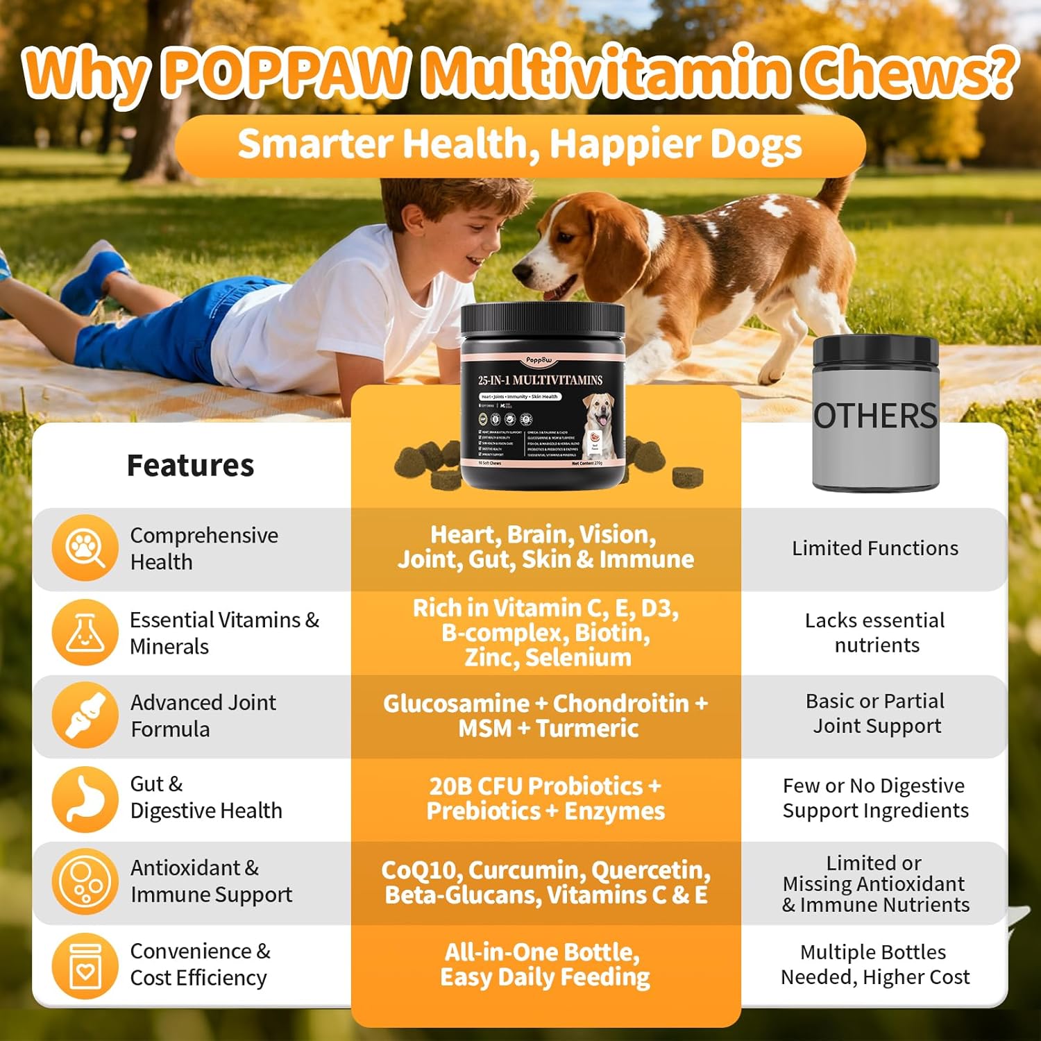 25-in-1 Dog Multivitamin Chews – All-in-One Daily Vitamins & Supplements for Dogs, Joint Support with Glucosamine MSM, Omega-3 Skin & Coat, Gut, Heart & Brain, All Breeds & Ages, Beef, 60Ct