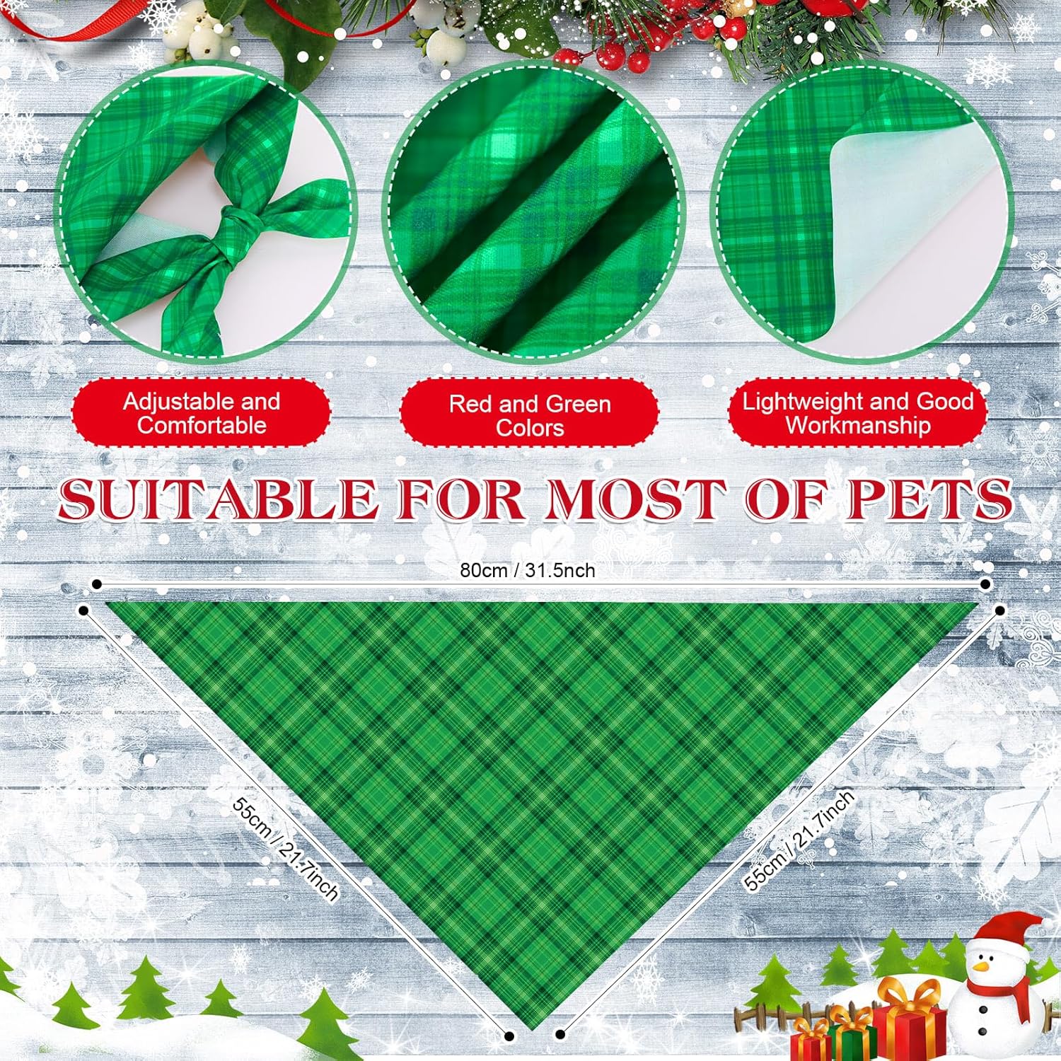 - Suitable Size: these Xmas plaid dog bandanas for dogs are approx. 31.5 x 21.7 x 21.7 inches/ 80 x 55 x 55 cm, the right size for most size dogs, can be folded and adjusted, please confirm the size information before purchasing