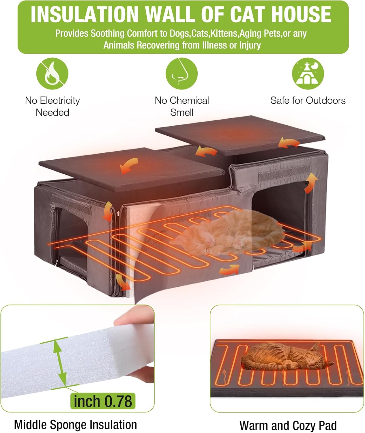 - Enhanced Safety with Escape Door Equipped with both a main entrance and a safety escape door, this shelter ensures cats can enter and exit quickly, offering protection from predators or unexpected threats. All-Weather Protection & Durability
