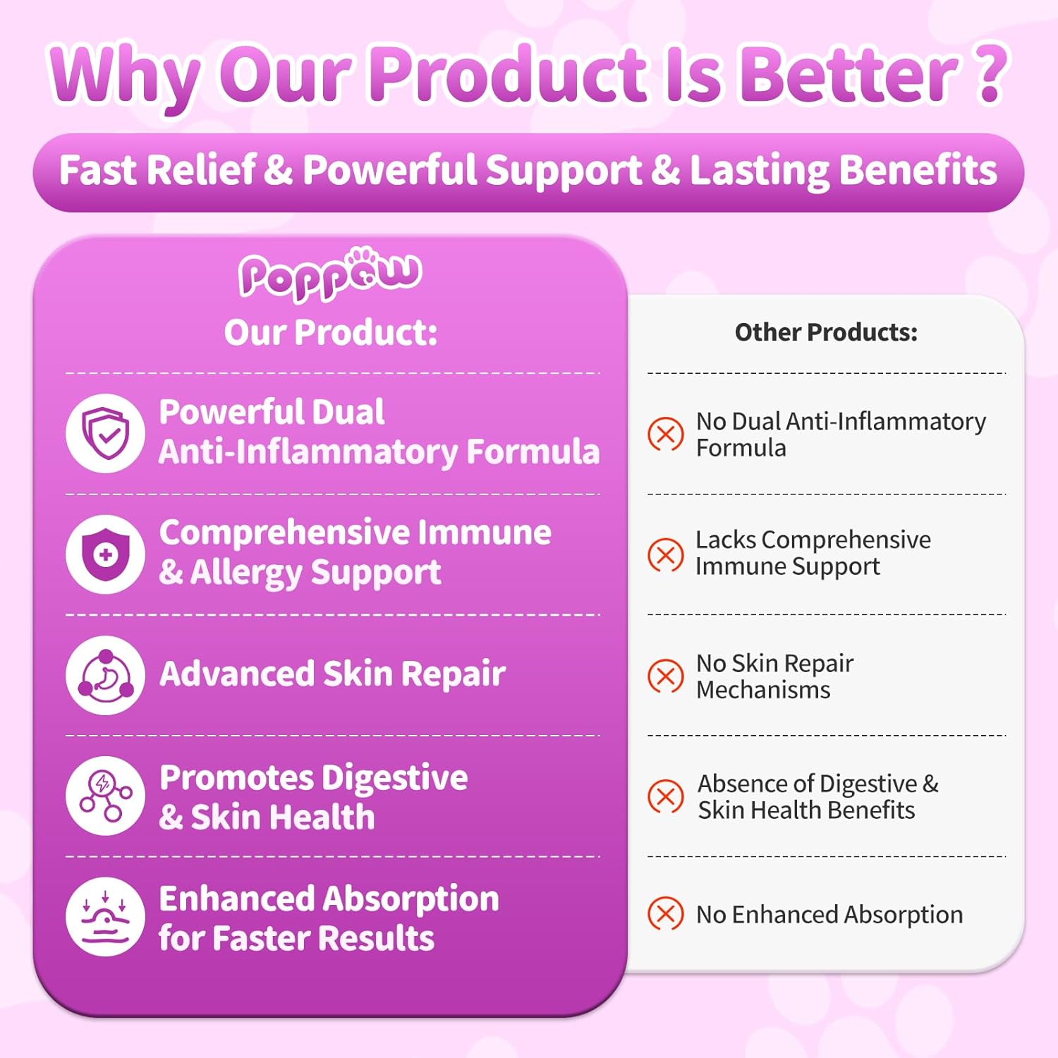 - Skin & Coat Health– Dog itching skin relief enriched with Omega-3, GLA, MSM, and bromelain to support skin hydration, elasticity, and a glossy, well-nourished coat