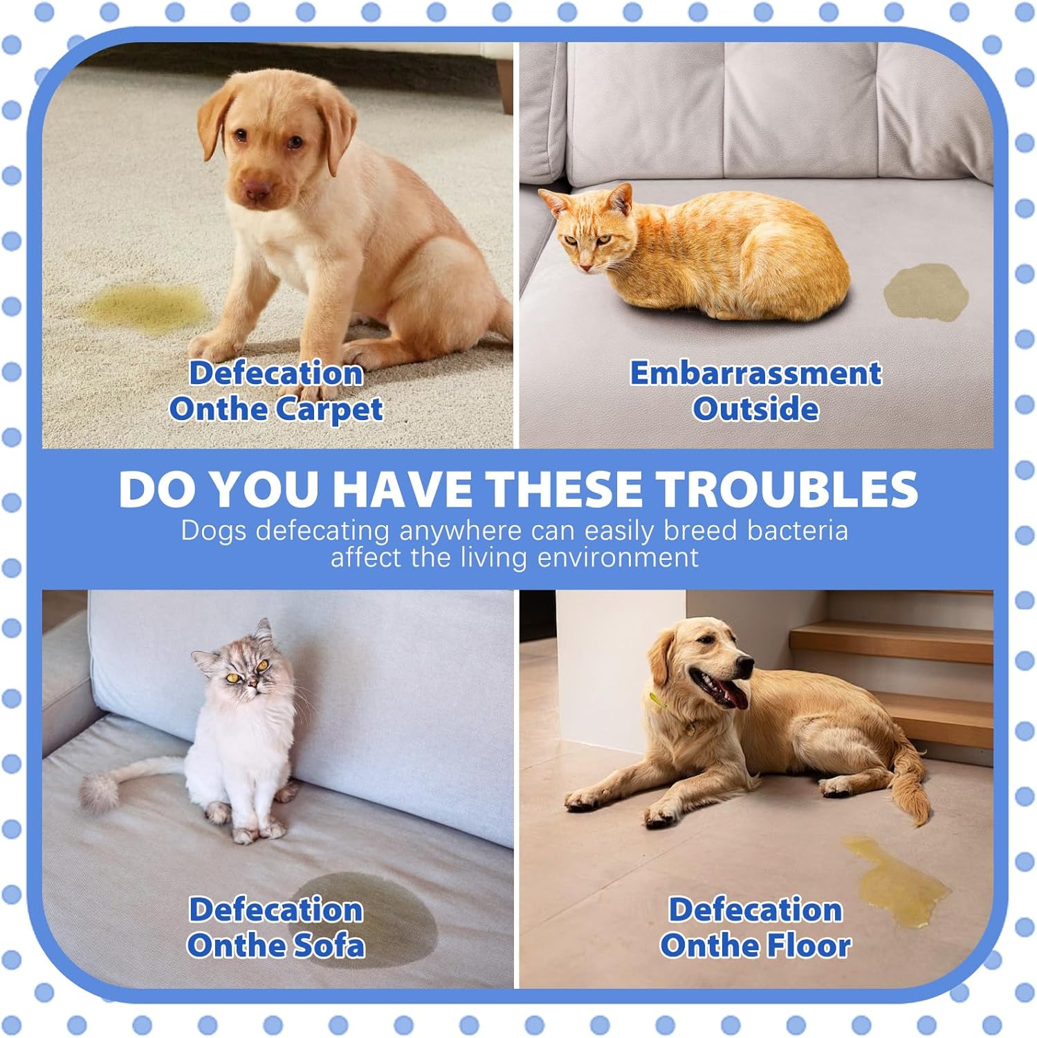 - Pet Potty Training Corrector - Our products can help you quickly shorten your dog's potty training time, whether you are doing puppy potty training or breaking old rules, it is a breeze. During the training process, be sure to reinforce good potty training behaviors with praise, petting and treats